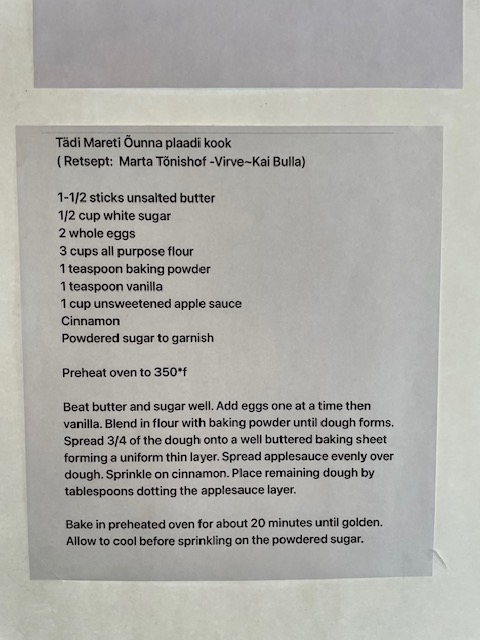 By Sunday, November 30, 2025, please send an email to Heikki and Inne Joonsar at kfes1918@yahoo.com to let them know you are coming so they may place an accurate catering order. Please include (1) the names of your guests and your children and their ages, and (2) what you will be bringing for the smorgasbord table.