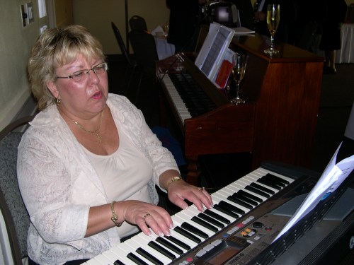 Ms. Kaie Latterner accompanies the singing of the national anthems