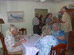 At the start of the business meeting, President Toomepuu graciously thanked our hosts, Oivi and Jack; his remarks were punctuated with enthusiastic applause by the entire group in gratitude to Oivi and Jack. KFES had one business item to address: KFES member Lisa Mets, formerly of Michigan and KLENK, reported that KLENK 2010 (Chicago) had voiced support that their next gathering be hosted in Florida in January 2012; otherwise, the midwestern rotation would place KLENK in Indianapolis in November 2011. Preliminary background work has been done, a hotel with very favorable rates has been identified, budget implications for KFES have been reviewed, and volunteers to offer sessions for the two-day program are already coming forward. On motion made and seconded, KFES voted affirmatively to form a committee of volunteers, chaired by Lisa Mets, so that KFES may co-host KLENK in St. Petersburg, Florida, Friday-Saturday, January 6-7, 2012. The business meeting concluded with a report by Mr. Henn Rebane, charter KFES President, on the founding of the KFES. Mr. Rebane and his wife, Norma Jean, were charter members of KFES and the St. Petersburg International Folk Fair Society (SPIFFS) and, for decades, they served as the leadership of the Estonian community in the St. Petersburg/Tampa Bay region. KFES members applauded Mr. and Mrs. Rebane for their service and leadership. The meeting adjourned with dessert.