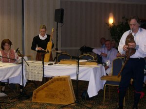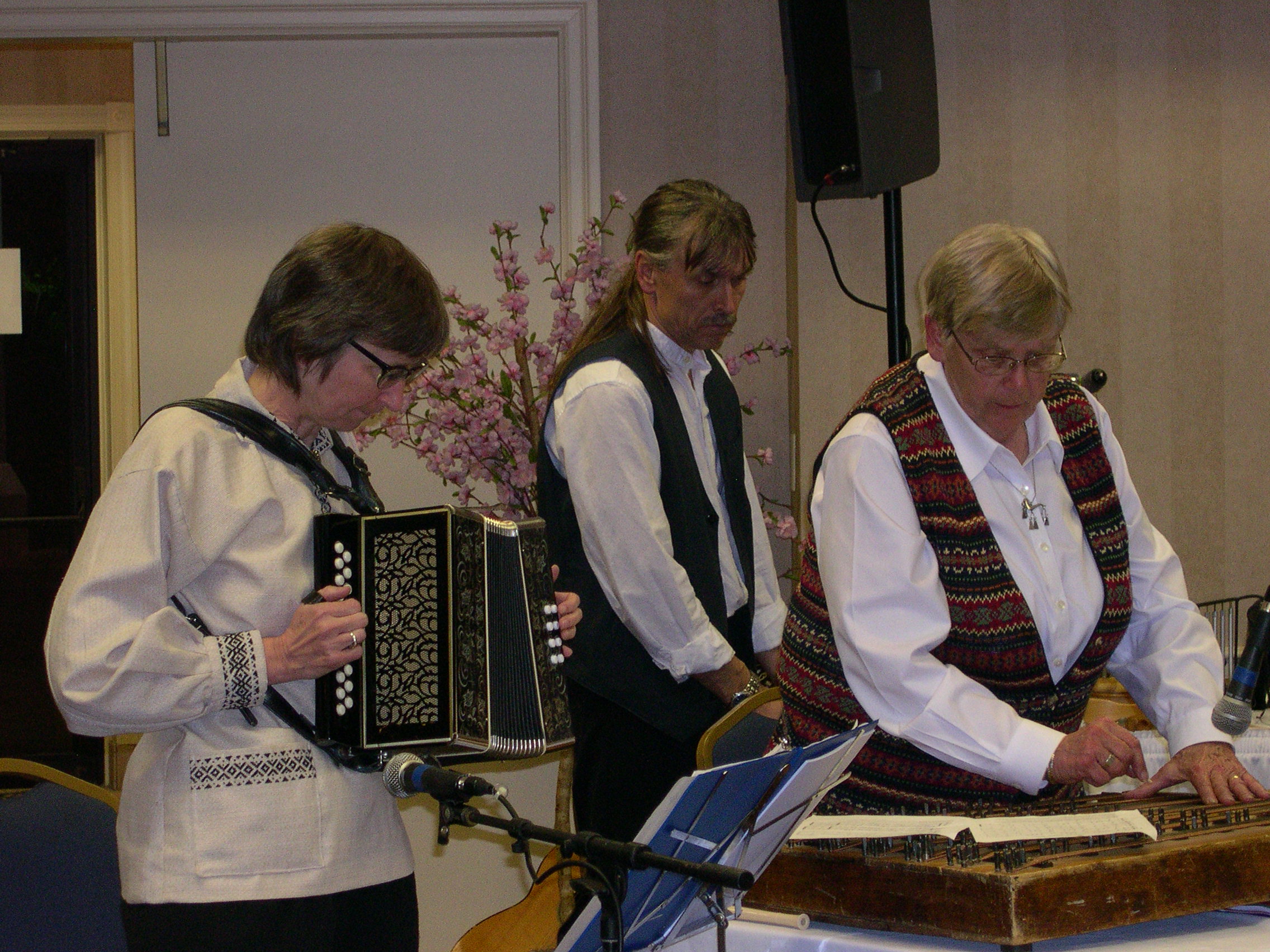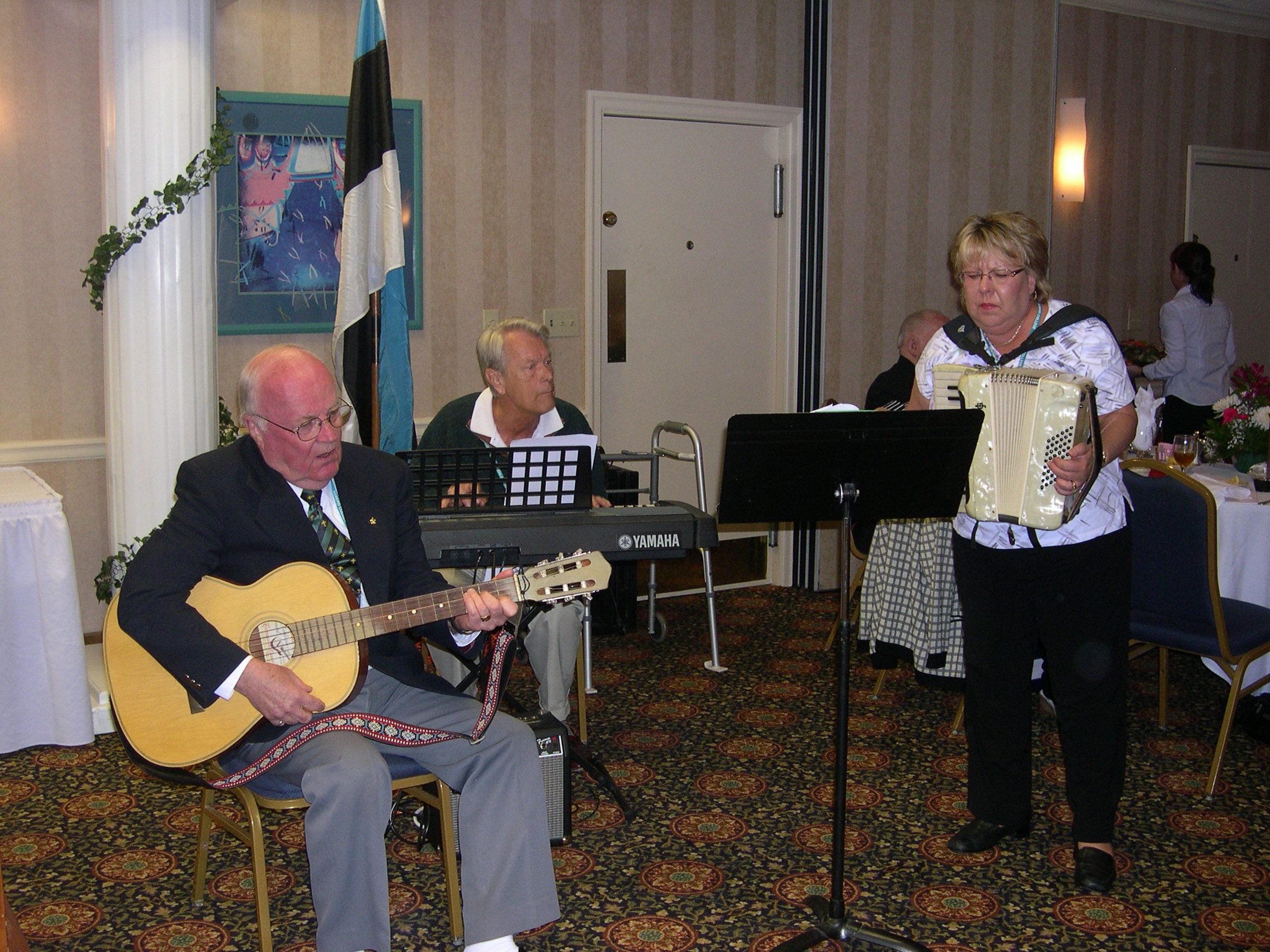 The dinner programs Friday and Saturday evenings featured traditional Estonian folk music, folk dance, and sing-alongs. Highlights included performances by Siilikesed, Ain Haas’s Estonian and Latvian folk music group from Indianapolis; and Saare Vikat, New York’s folk dance group directed by Liisi Vanaselja. Chicago’s Estonian House’s folk dance teacher, Estonian Sirje Press, led audience participation in Perekonna Valss. Sing-alongs were led by vocalist Enn Kiilaspea, key boardist Taavo Virkhaus, and accordionist and force majeure for both evenings’ programs, Kaie Põhi Latterner.