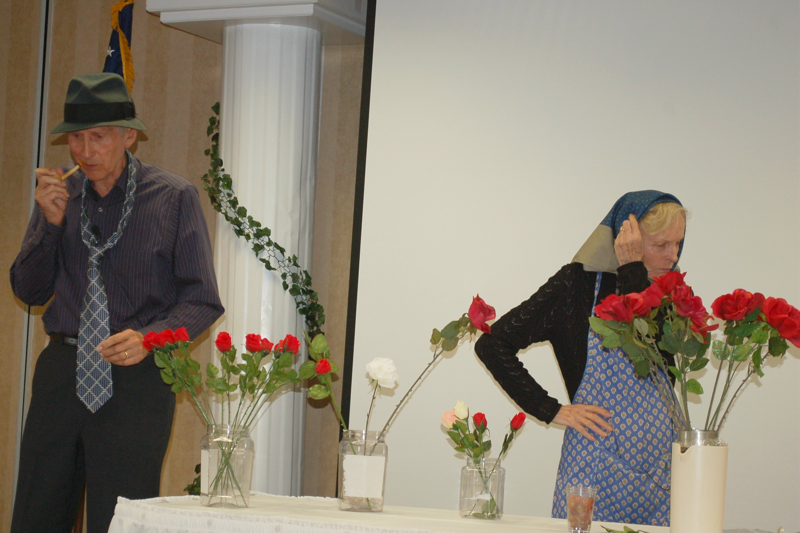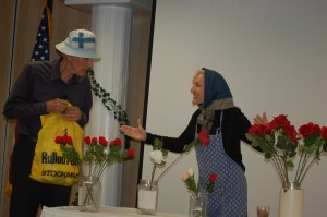 In Estonian, Helve and Heiki Parts presented The Flower Vendor as a theatrical interlude. The skit needed no translation and absolutely charmed everyone.