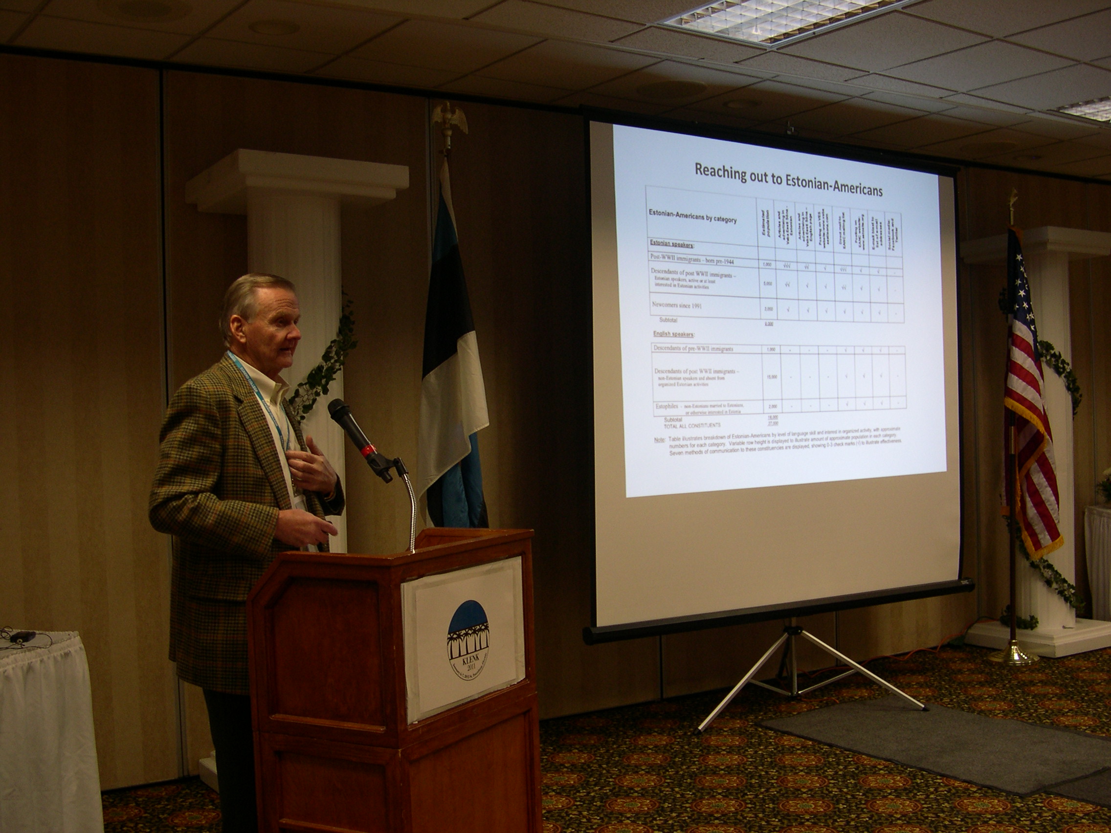A welcome from the presidents of the two Florida Estonian associations started Saturday morning’s program. Tõnu Toomepuu brought greetings from the Estonian Society of Central Florida (Kesk Florida Eesti Selts), which organized all arrangements. Arno Kallas brought greetings from the Estonian National Association of South Florida (Lõuna Florida Eestlaste Koondis).