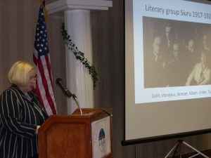 Sirje Kiin, the 2011 prize winning author recognized by the Marie Under and Artur Adson Memorial Foundation, kicked off the afternoon’s lectures with her insight into Marie Under, Estonia’s esteemed poet who sadly was never recognized with a Nobel Prize in literature. The outline of Sirje Kiin’s remarks can be found through this link to her presentation slides: Marie Under: Why Didn’t She Win a Nobel Prize?