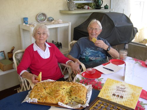 Celebrating Väino Aare’s 90th birthday with wife, Leena Aare, KFES, 8. dets. 2012