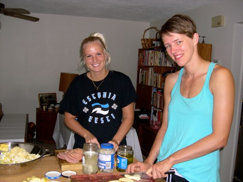 Kati Rausberg and Viive Rebane preparing rosolje for the Jaanipäeva celebration. June 23, 2013