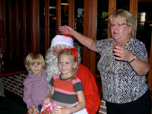 Logan and Annika Karr with Santa and päkapikk Kaie Latterner, KFES, December 8, 2013