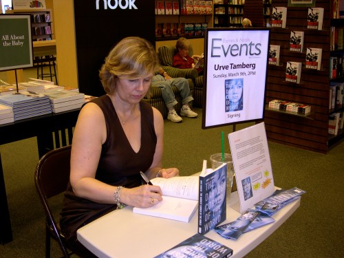 Urve Tamberg, author of “The Darkest Corner of the World,” signs books, Sarasota, Florida, March 9, 2014.