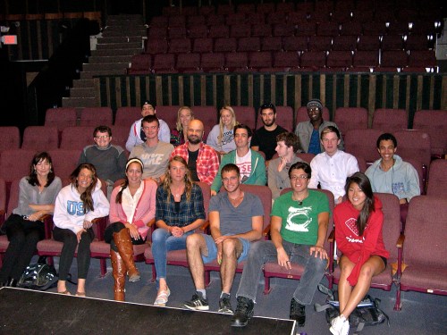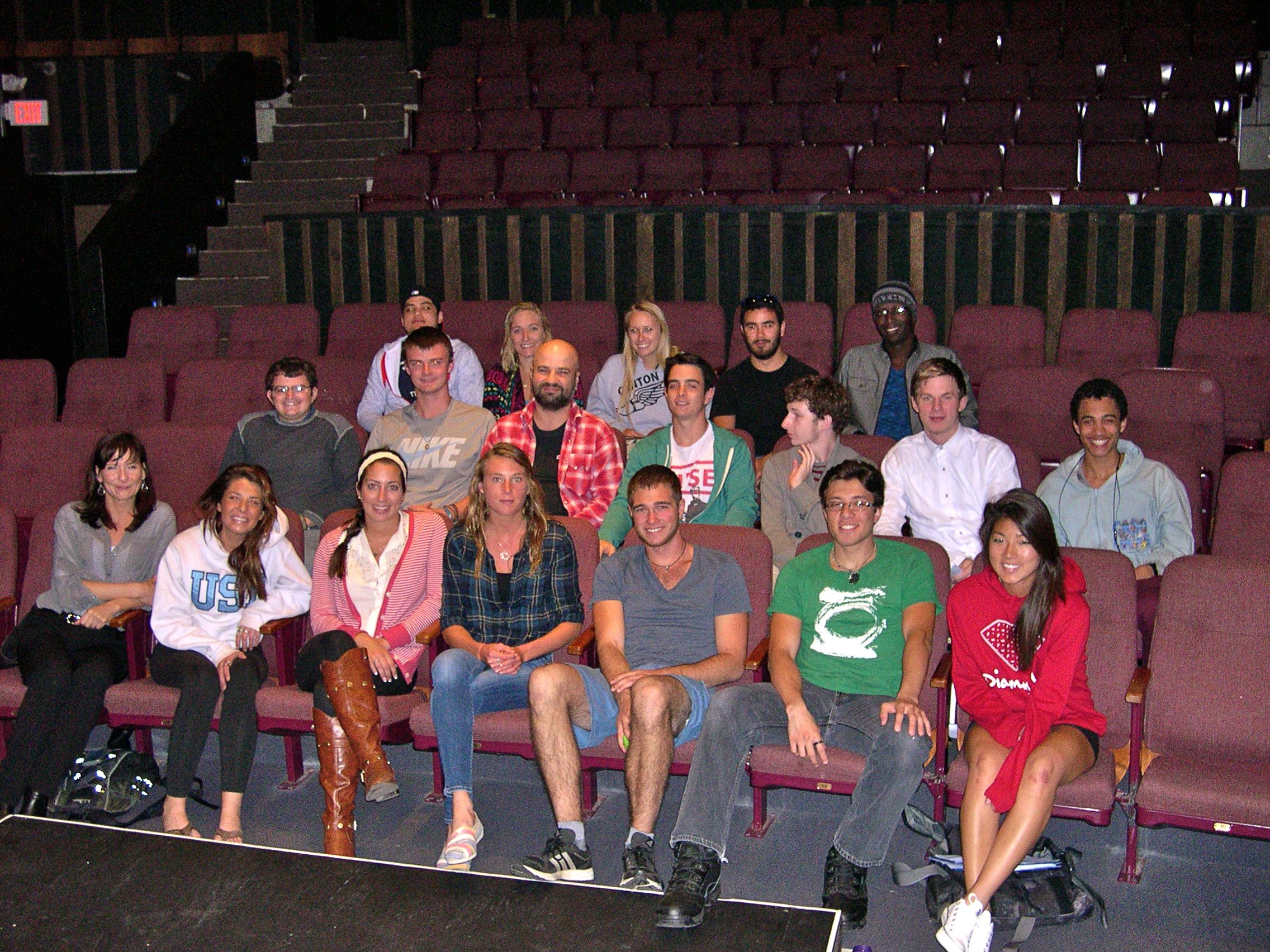 Mihkel Raud (center) with the Eckerd College “Introduction to Acting Class” and Professor Antonia Krueger (front row, left). St. Petersburg, Florida, March 13, 2014. Photo: Lisa A. Mets