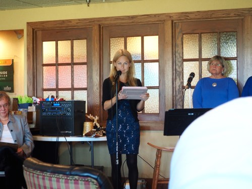 KFES Vice President Triin Karr reads a poem. Kesk Florida Eesti Selts, EVA 97, 21 veeb 2015. Foto: Erkki Taada