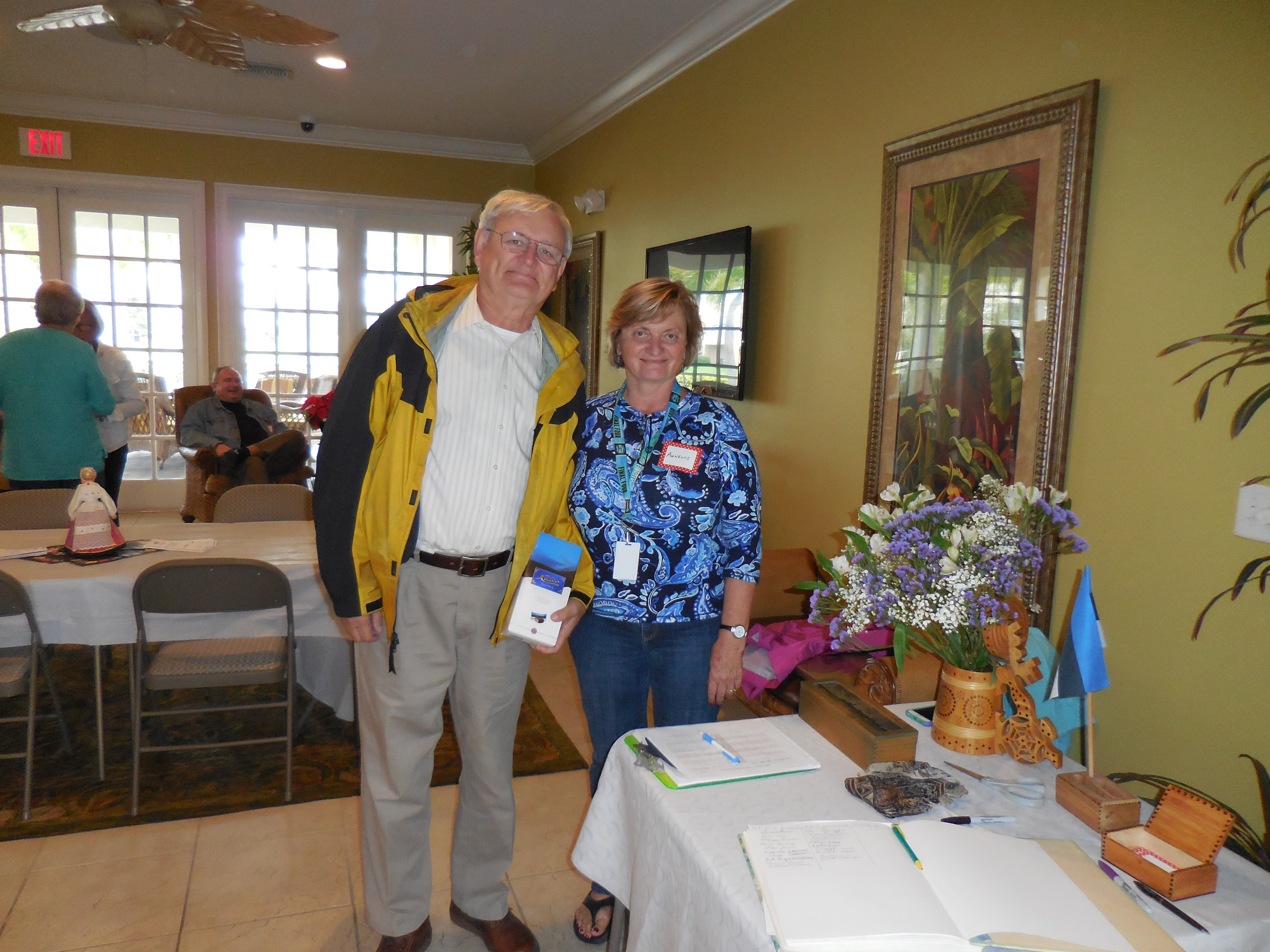 Host Anneliis Kuusik welcomes Erkki Taada, KFES luncheon, 03 Jan 2016