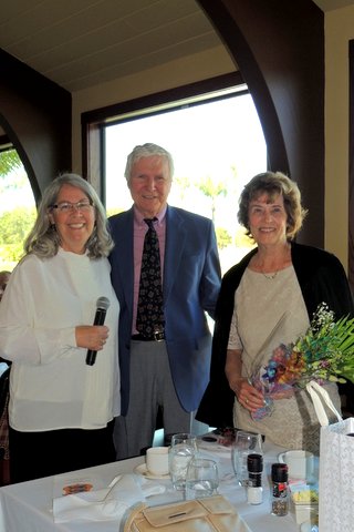 Eesti Vabariigi Aukonsul Lisa Mets thanks Arvi and Evi Kallas of the LFEK, KFES Eesti Vabariigi 98.a. Aastapäeva Tähistamine, 20. veeb. 2016, Clearwater, Florida. Foto: Urve Põhi