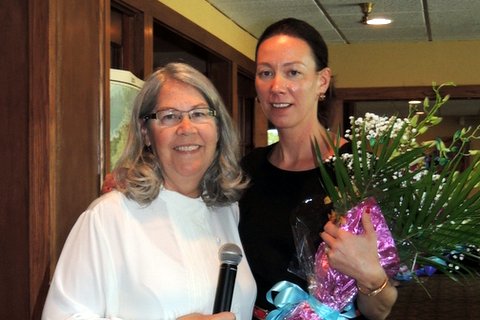 Eesti Vabariigi Aukonsul Lisa Mets thanks Ms. Marki Tihhonova-Kreek, KFES Eesti Vabariigi 98.a. Aastapäeva Tähistamine, 20. veeb. 2016, Clearwater, Florida. Foto: Urve Põhi