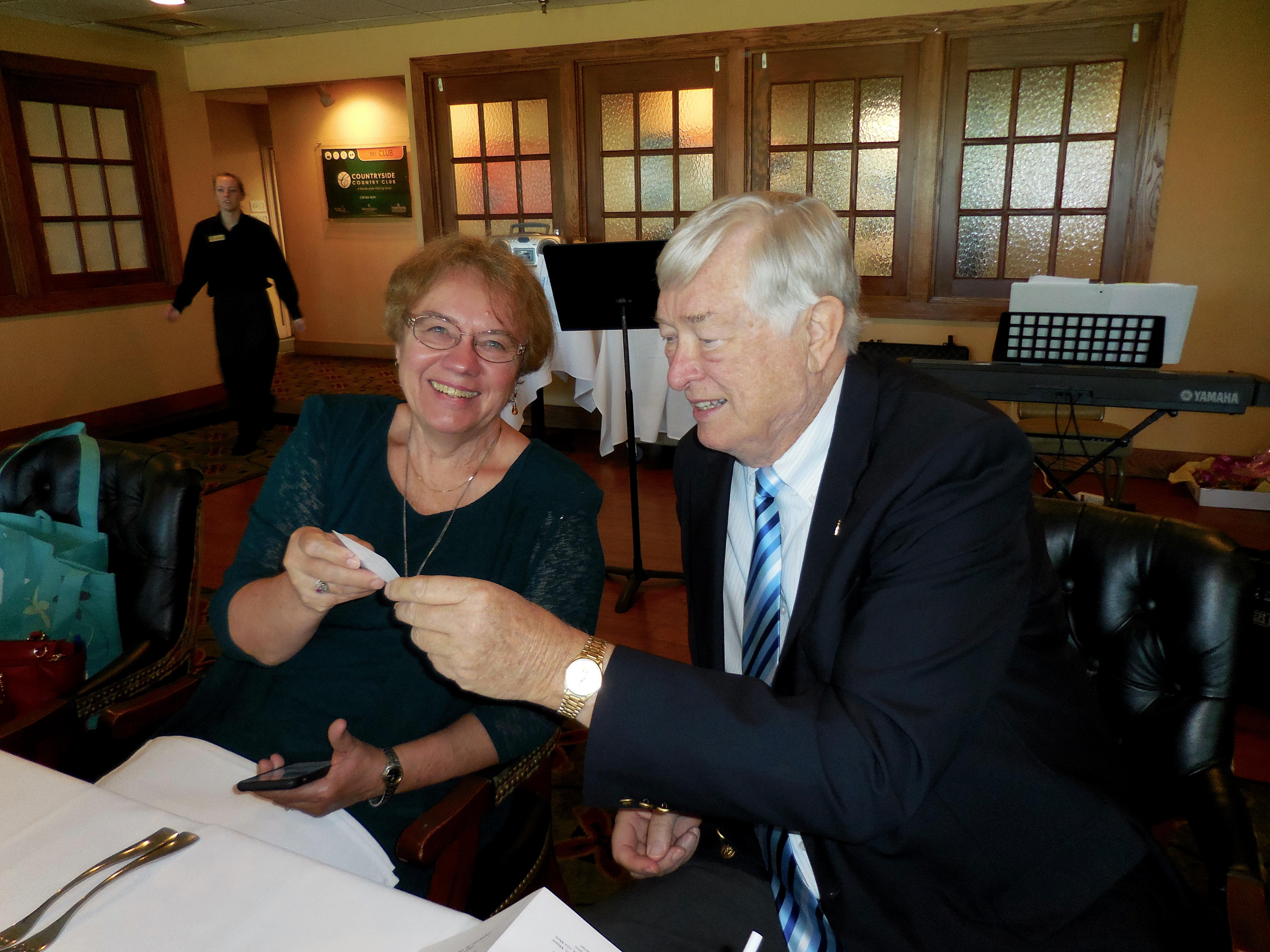 Kersti Linask and Pastor Priit Rebane. Eesti Vabariigi 98.a. Aastapäeva Tähistamine, Kesk Florida Eesti Selts, Countryside Country Club, Clearwater, FL, 20. veeb. 2016.a. Foto: Lisa A. Mets