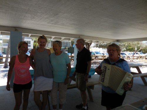 Sünnipäeva lapsed: Triin Karr, Aini Stephens, Maare Kuuskvere and Jaan Kuuskvere with Kaie Põhi Latterner. Kesk Florida Eesti Selts picnic, Anna Maria Island, FL, 24 apr. 2016. Foto: Lisa A. Mets