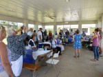 Our picnic was held for the first time in the Seminole Isle Pavilion by the Bayou. It was perfect for our group with the screened covered picnic pavilion, waterside dock and sand-fire pit. The weather this day was ideal with our cloudless blue sky and sweet breeze. KFES provided grilled bratwurst and hotdogs; thank you grillmaster Dallas Dishmey! Everyone else contributed a delicious assortment of appetizers, salads, side dishes, and desserts to complement our birthday cake. We had our full share of Estonian dishes and desserts! And we had fun with our Estonian and multi-lingual sing-a-long too!