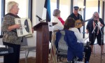 Today was special. Estonians love music and dance and, as Estonians, our Kesk Florida Eesti Selts does too! Rein Männik returned with his guitar and offered a couple ballads to our appreciative ears. Kaie Põhi Latterner picked up her accordion and, with Rein, led our entire group in the singing of a number of our favorite ühislaulud: Ma Tahaksin Kodus Olla, Tallinna Teel, Kungla Rahvas, Viljandi Paadimees, and Jää Vabaks, Eesti Meri. We concluded our musical and dance program with the Perekonna Valss. Several members dressed in Estonian traditional folk dresses; and the beautiful table decorations, each a stylized Eesti sõlg, all made by Anneliis Kuusik, were right on theme.