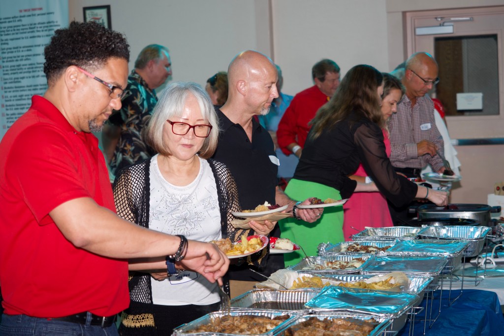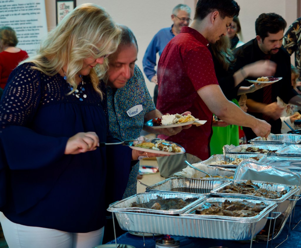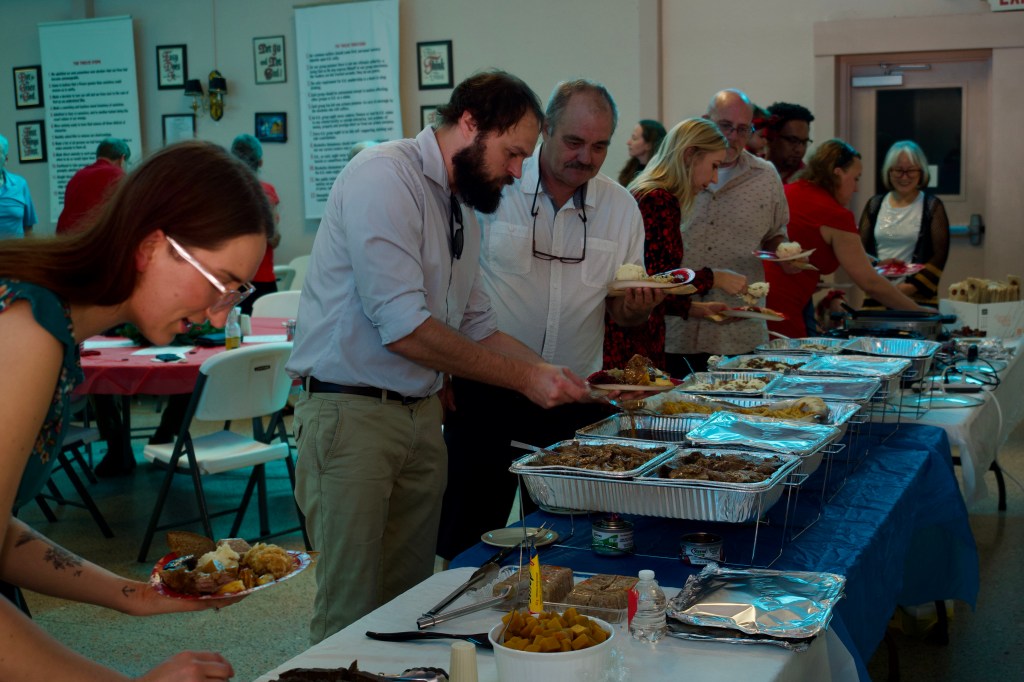 Once we settled in, Vincent Delaidatti offered a blessing for our meal. Then hungry folks lined up to pass through our wonderful luncheon table.