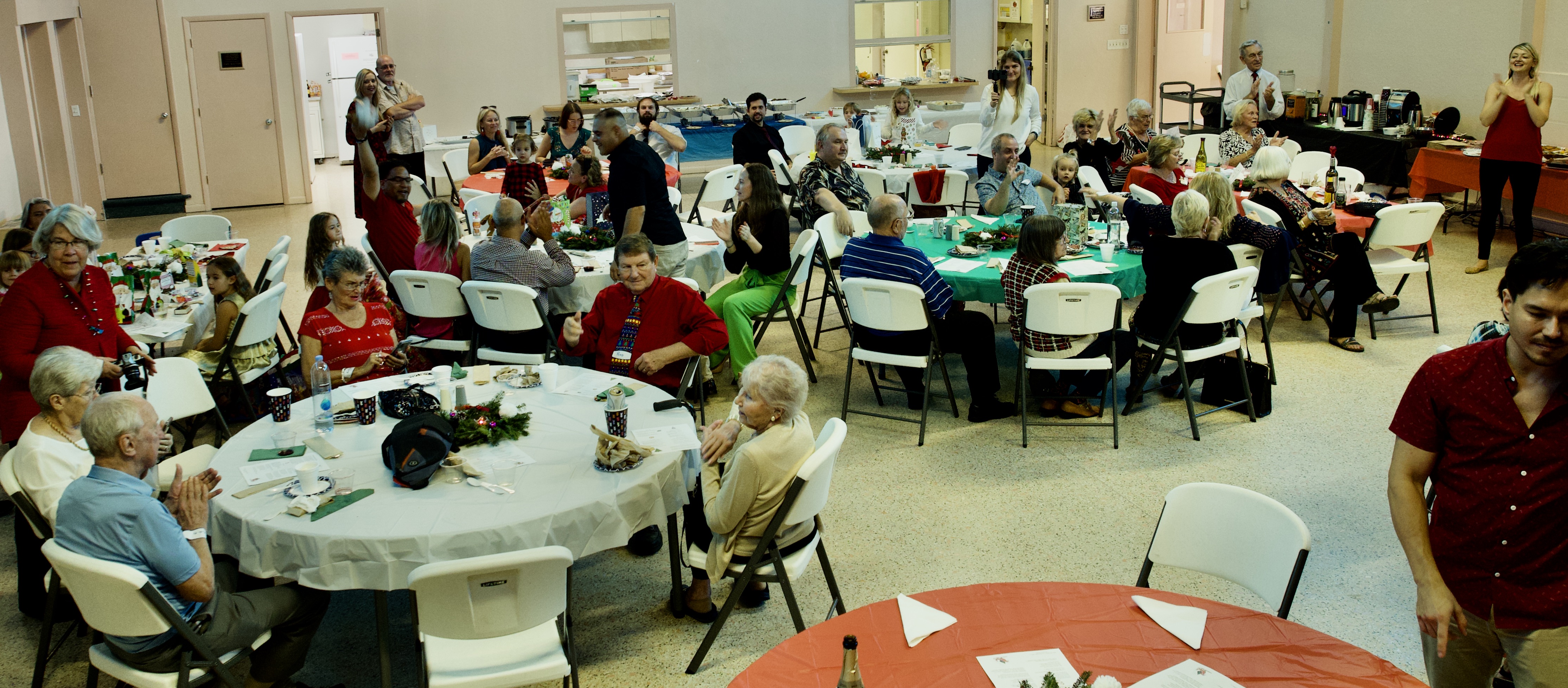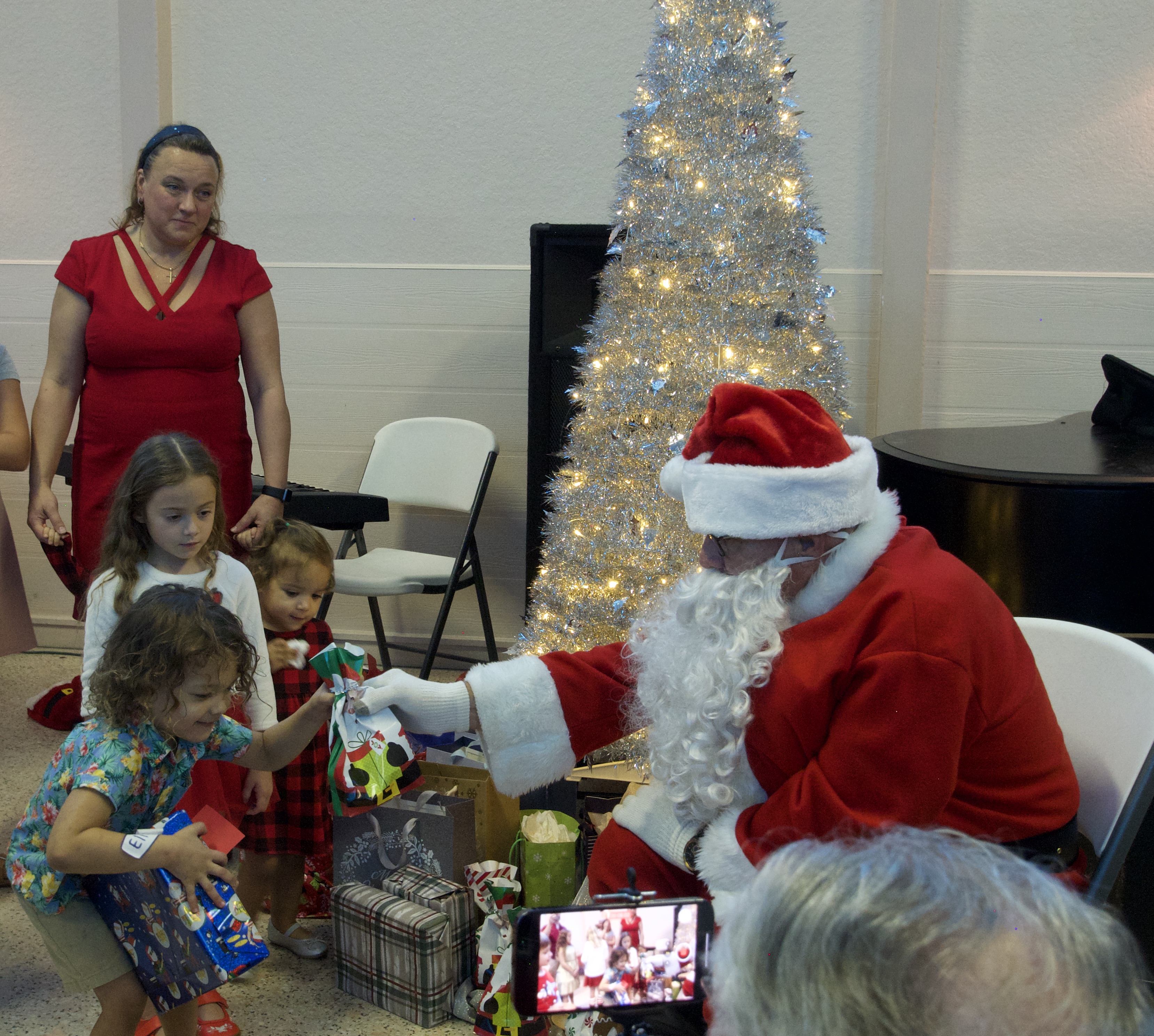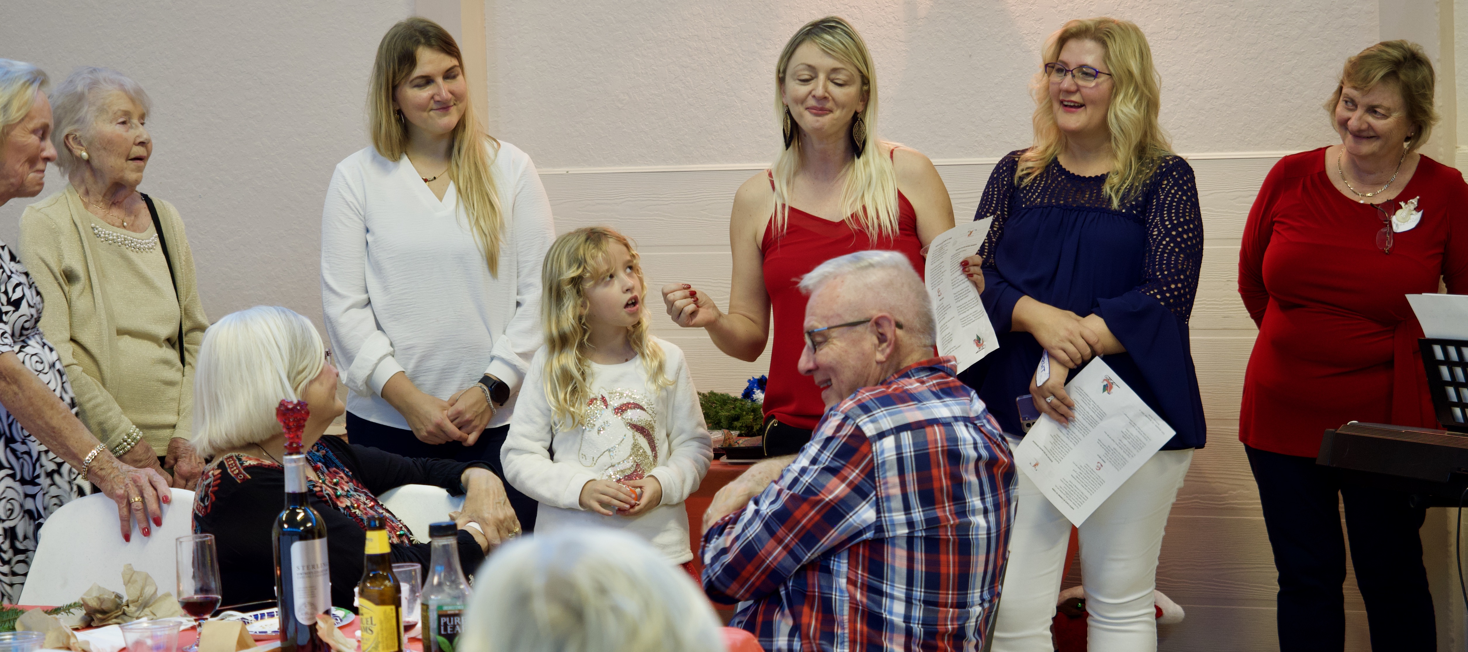 On Saturday, December 11, 2021, 53 members and friends of the Kesk Florida Eesti Selts/Estonian Society of Central Florida, and 11 children aged from 10 months to 10 years, gathered at long last since 2019 at the Lutheran Church of the Good Shepherd in Seminole, Florida, to celebrate the Christmas season with a festive traditional Estonian-style Christmas meal (including verivorst, pickled pumpkin and sült and kringel, piparkoogid and roosamanna) and an early appearance by Jõuluvana (Santa Claus) just for our good girls and boys (aged 10 months to 90+ years). Our guests drove from as far away as Brooksville, The Villages, Naples, Orlando and Cocoa Beach; as near as Tampa Bay; and Viivi, Mia and Elli flew in recently from Eesti. How happy we were to see each other again!