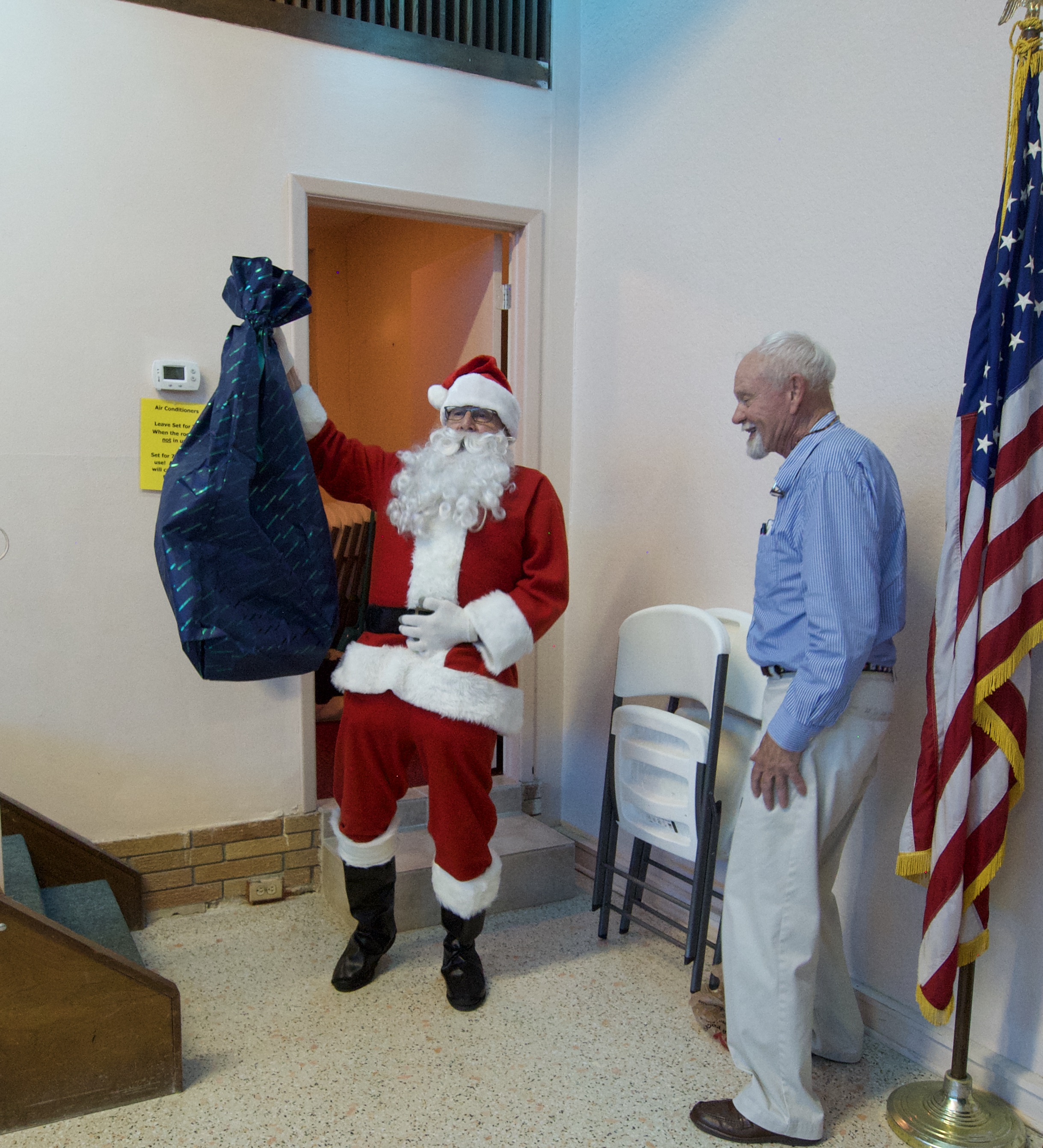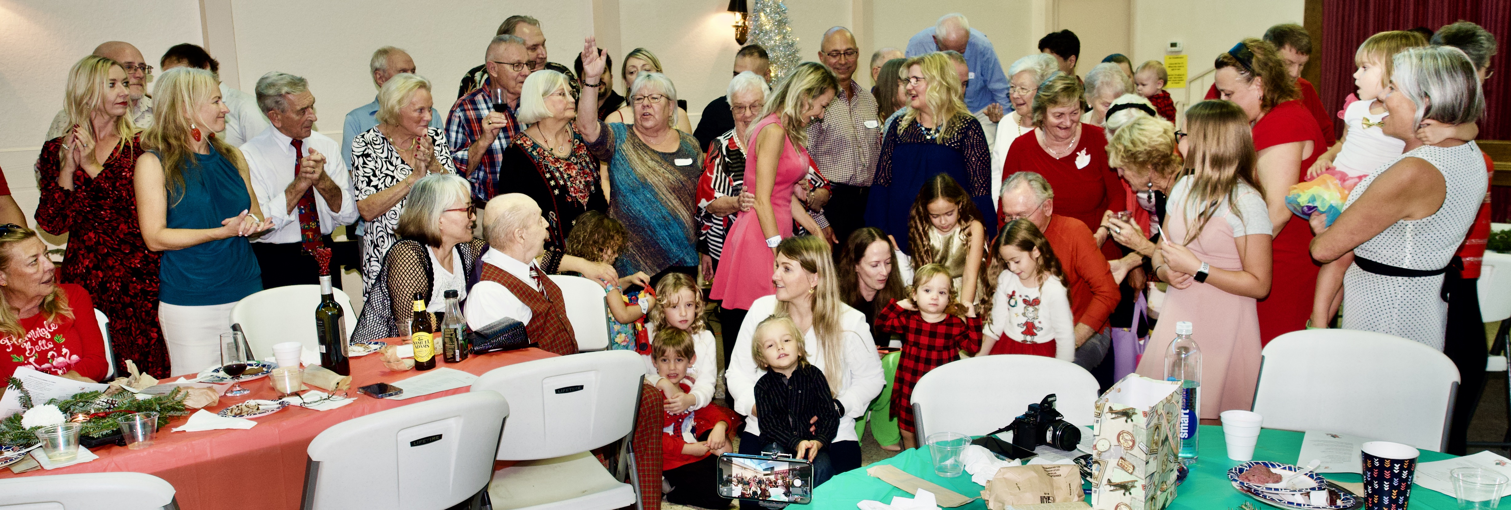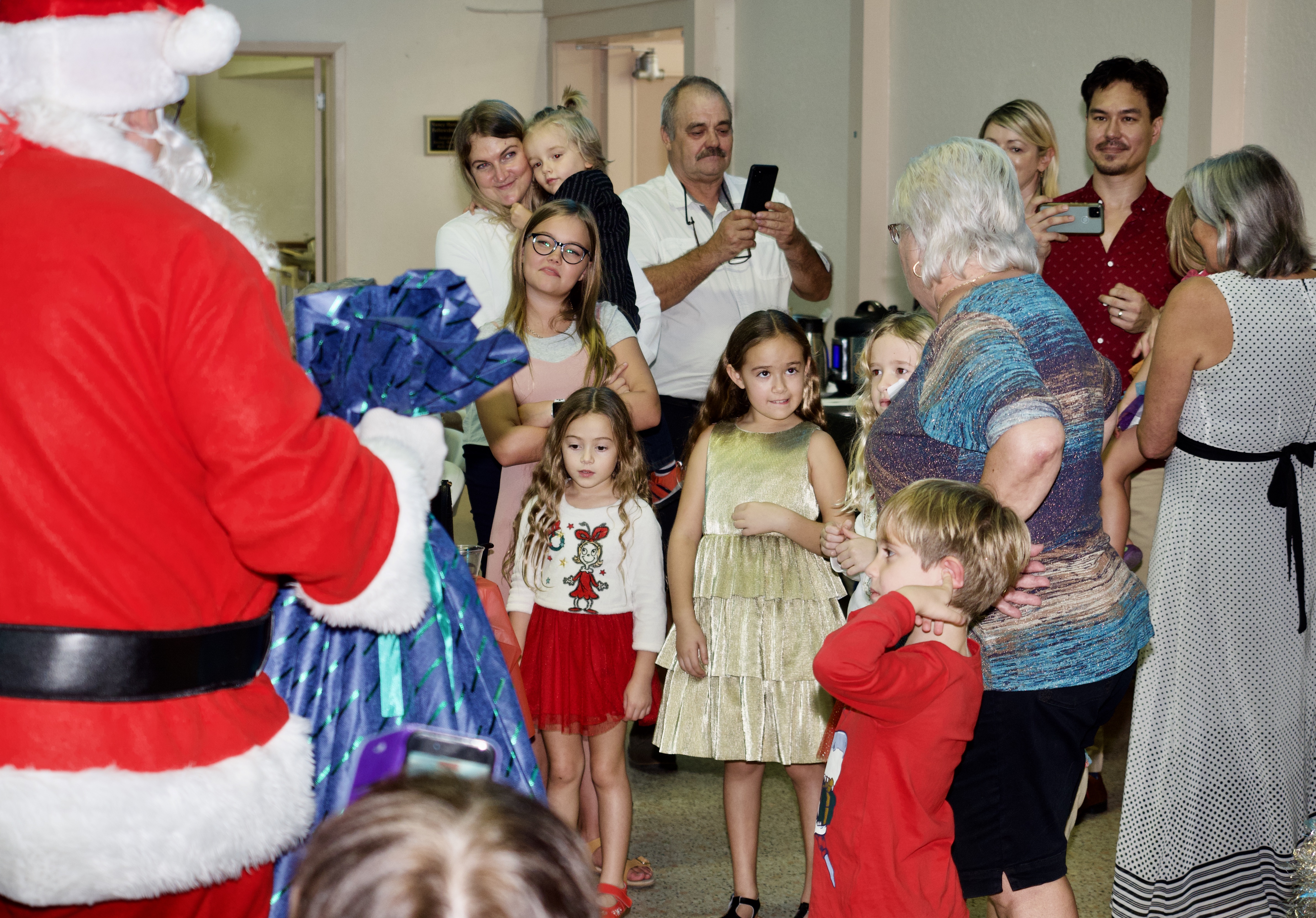 On Saturday, December 11, 2021, 53 members and friends of the Kesk Florida Eesti Selts/Estonian Society of Central Florida, and 11 children aged from 10 months to 10 years, gathered at long last since 2019 at the Lutheran Church of the Good Shepherd in Seminole, Florida, to celebrate the Christmas season with a festive traditional Estonian-style Christmas meal (including verivorst, pickled pumpkin and sült and kringel, piparkoogid and roosamanna) and an early appearance by Jõuluvana (Santa Claus) just for our good girls and boys (aged 10 months to 90+ years). Our guests drove from as far away as Brooksville, The Villages, Naples, Orlando and Cocoa Beach; as near as Tampa Bay; and Viivi, Mia and Elli flew in recently from Eesti. How happy we were to see each other again!