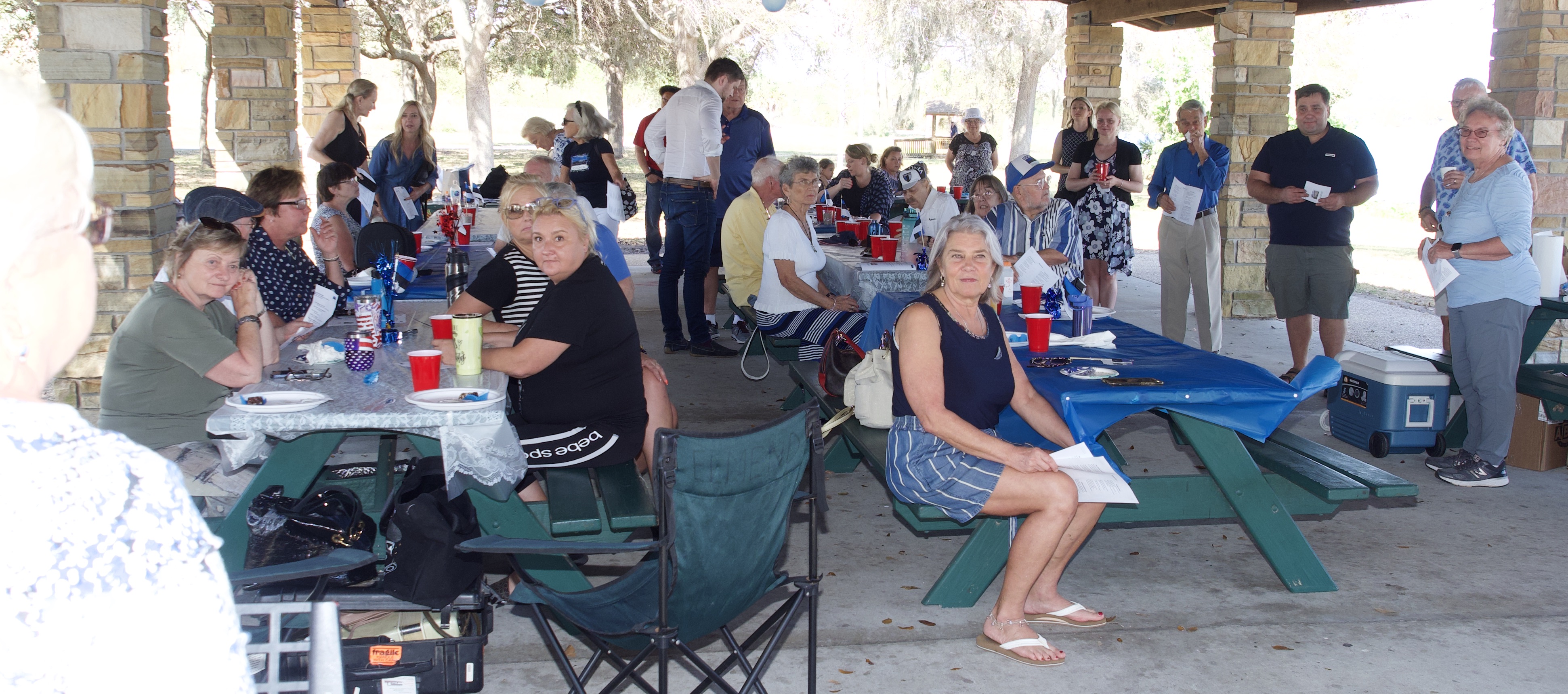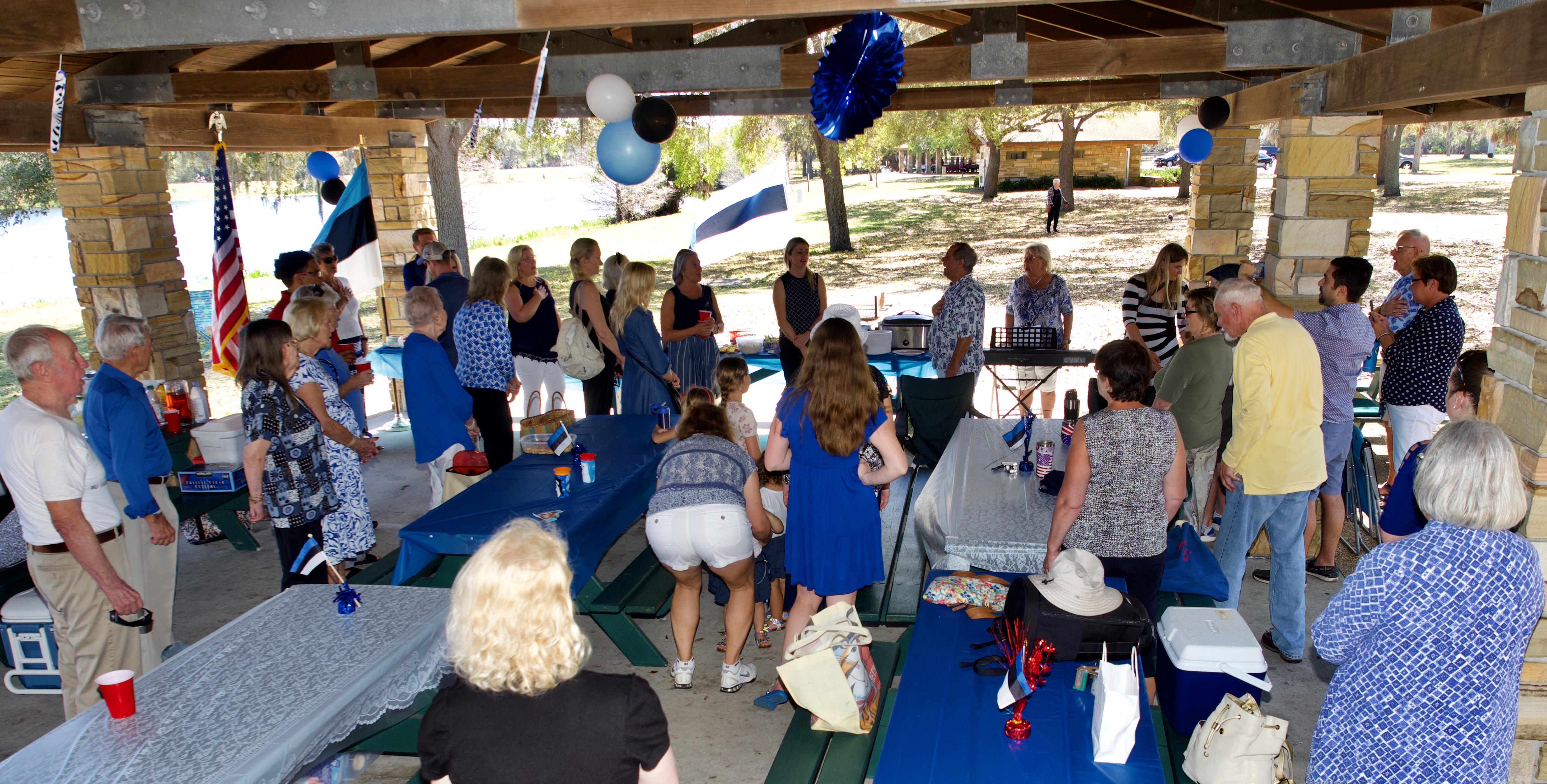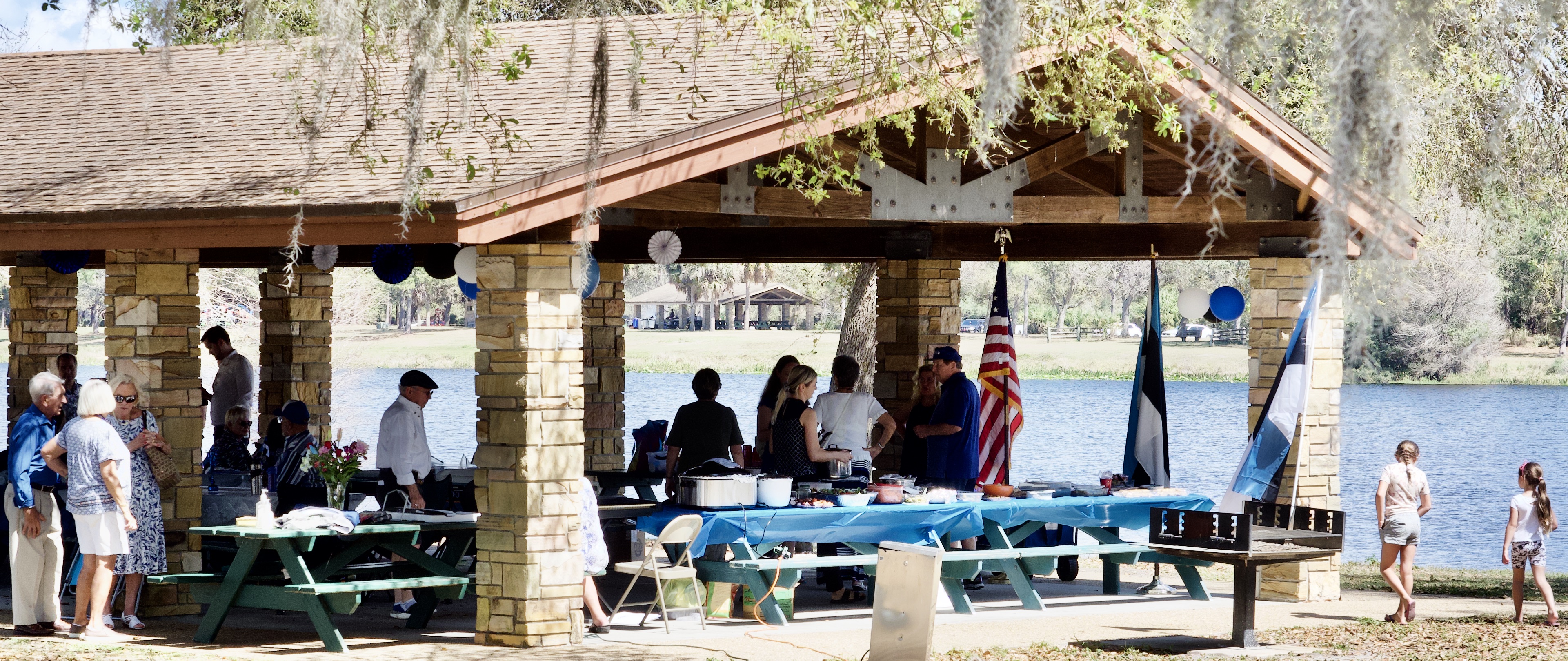 Outdoor picnics are among our favorite ways of gathering! On a beautiful warm and sunny day, Kesk Florida Eesti Selts (KFES)/Estonian Society of Central Florida–55 members, friends and children–celebrated the 104th Anniversary of Estonian Independence on Sunday, February 27, 2022, from 1:00 to 4:00 pm EST, in Walsingham Park (click on the link for park information), Shelter 8, 12615 102nd Ave, Seminole, FL 33778.
