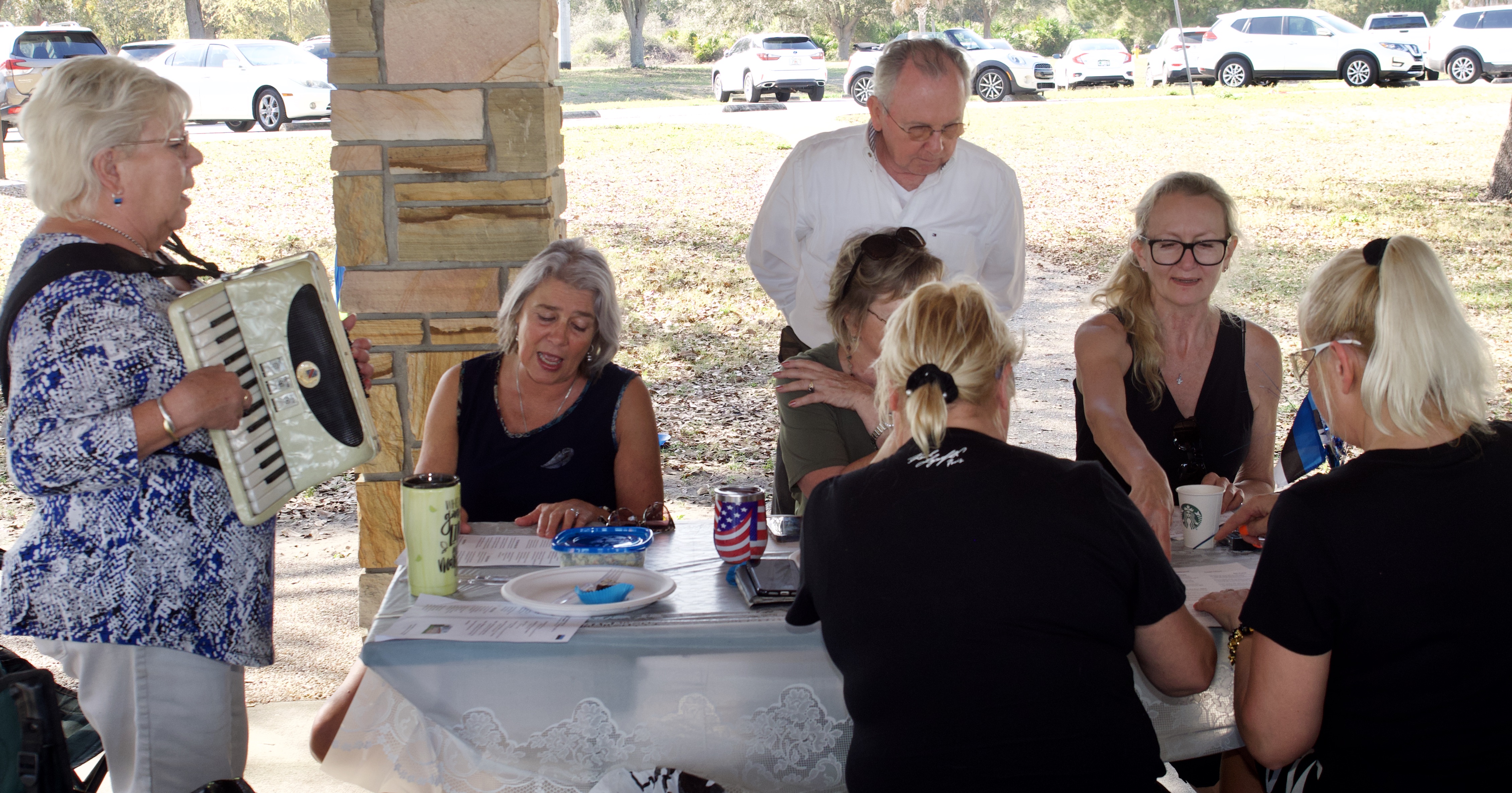 Birgit Delaidatti and Moonika Mägi (far left) lead our songs. Kesk Florida Eesti Selts EVA104 Piknik. 27. veeb. 2022.a. Walsingham Park, Seminole, FL. Foto: Erkki TaadaEesti aukonsul and musician extraordinaire Kaie Põhi Latterner leads our musical program. Kesk Florida Eesti Selts EVA104 Piknik. 27. veeb. 2022.a. Walsingham Park, Seminole, FL. Foto: Erkki TaadaBirgit Delaidatti, Aini Stephens, Kaivi Kuningas, Annika Laui, Anneliis Kuusik and accordionist Kaie Põhi Latterner. Kesk Florida Eesti Selts EVA104 Piknik. 27. veeb. 2022.a. Walsingham Park, Seminole, FL. Foto: Erkki Taada
