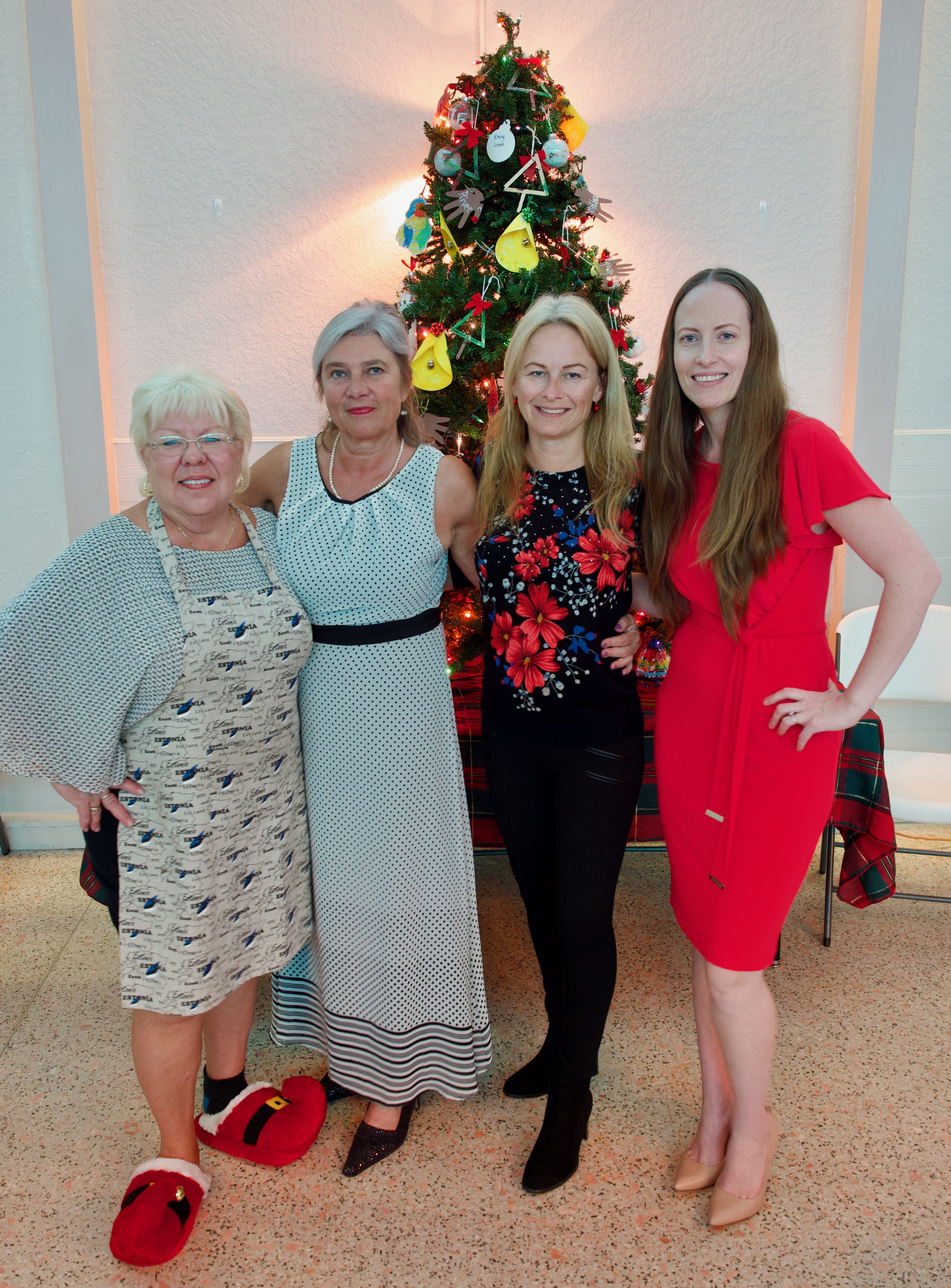Kaie Latterner, Astrid Normet, Triin Karr and Reet Cabrera. Jõulud. Kesk Florida Eesti Selts, 7. dets. 2019. Seminole, FL.