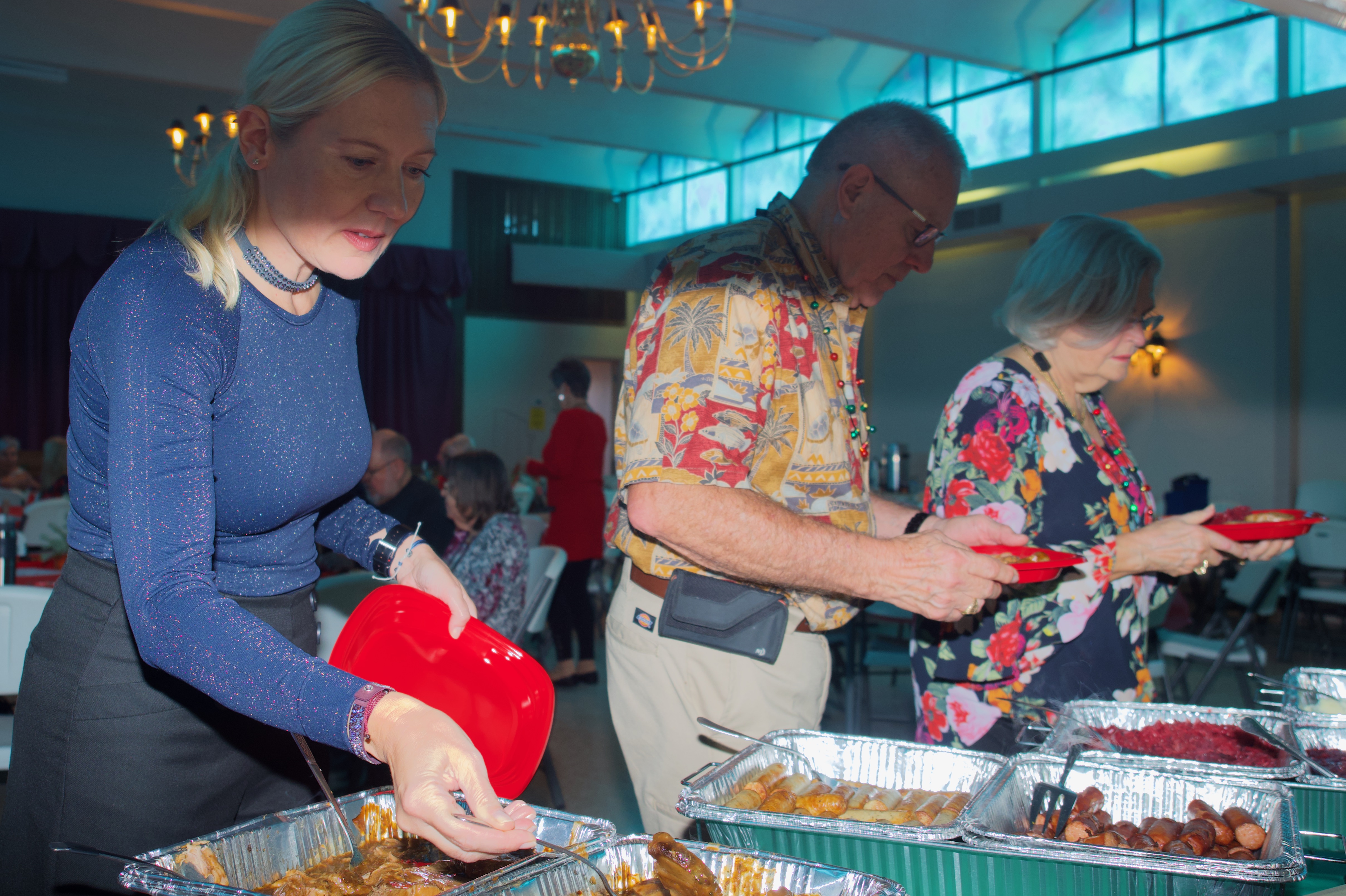 Lily Sinijärv follows Inne and Heikki Joonsar. Jõulud. Kesk Florida Eesti Selts, 7. dets. 2019. Seminole, FL.