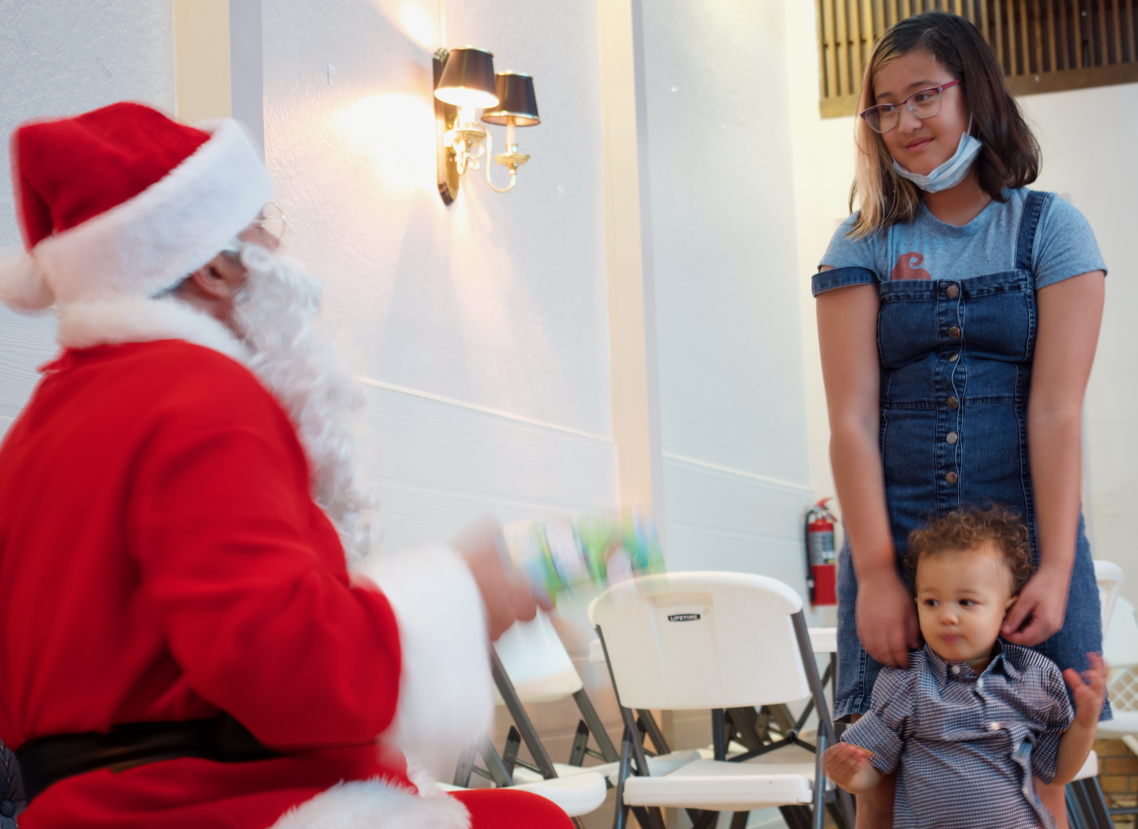 Eliot Toomepuu and Alexis with Santa. Jõulud. Kesk Florida Eesti Selts, 7. dets. 2019. Seminole, FL.