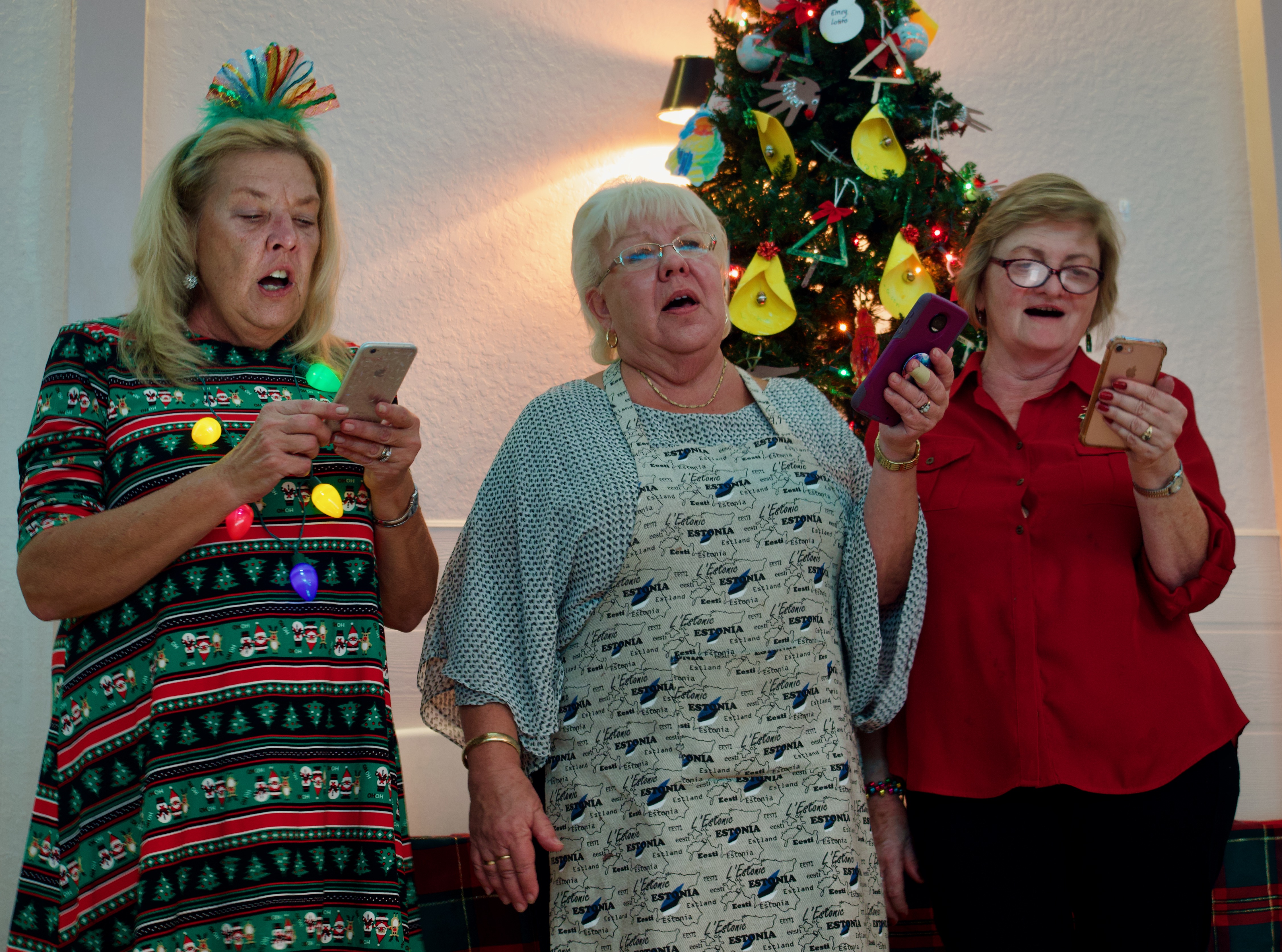 Virve Kai Bulla, Kaie Latterner and Anneliis Kuusik. Jõulud. Kesk Florida Eesti Selts, 7. dets. 2019. Seminole, FL.