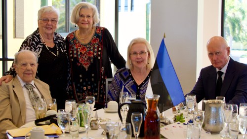 Ed Kliimas and Urve Põhi with Anneliis and Taivo Hurt. Kesk Florida Eesti Selts EVA 102 tähistamine. 22. veeb. 2020. Clearwater, FL. Foto: Erkki Taada