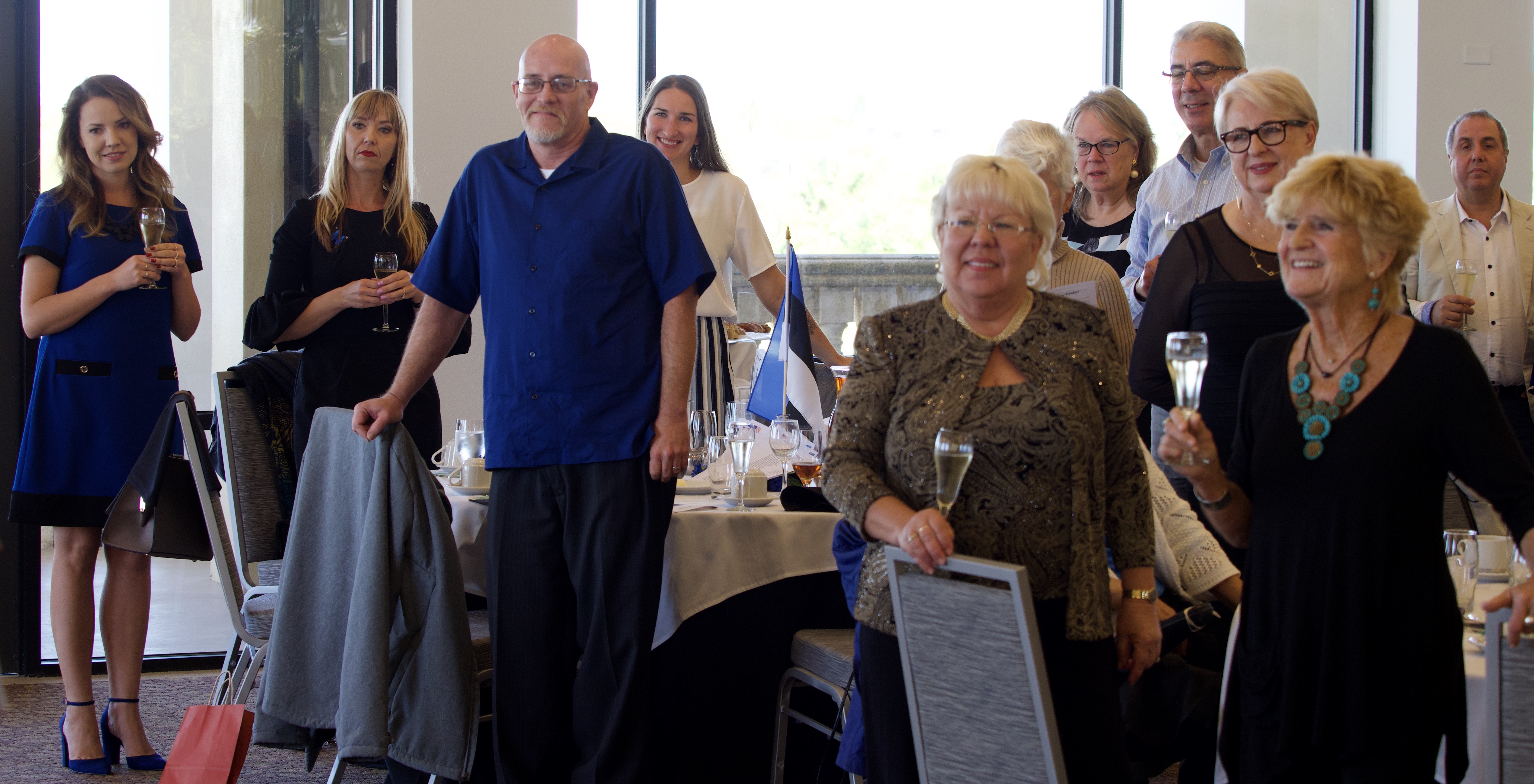 (back l to r) Kadri Lindemann Owens, Helen Tammela, David Clauch, Liis Janusauskas, Moonika Orumaa Craig, David Sheridan, Ludmilla Stelmokene, and Vincent Delaidatti. (front l to r) Kaie Põji Latterner and Judy Splendore. Kesk Florida Eesti Selts EVA 102 tähistamine. 22. veeb. 2020. Clearwater, FL. Foto: Erkki Taada