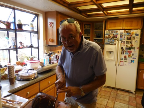 Markus Larsson cuts the smoked ham. Kesk Florida Eesti Selts, 12. märts. 2017. Clearwater, FL. Foto: Lisa Mets