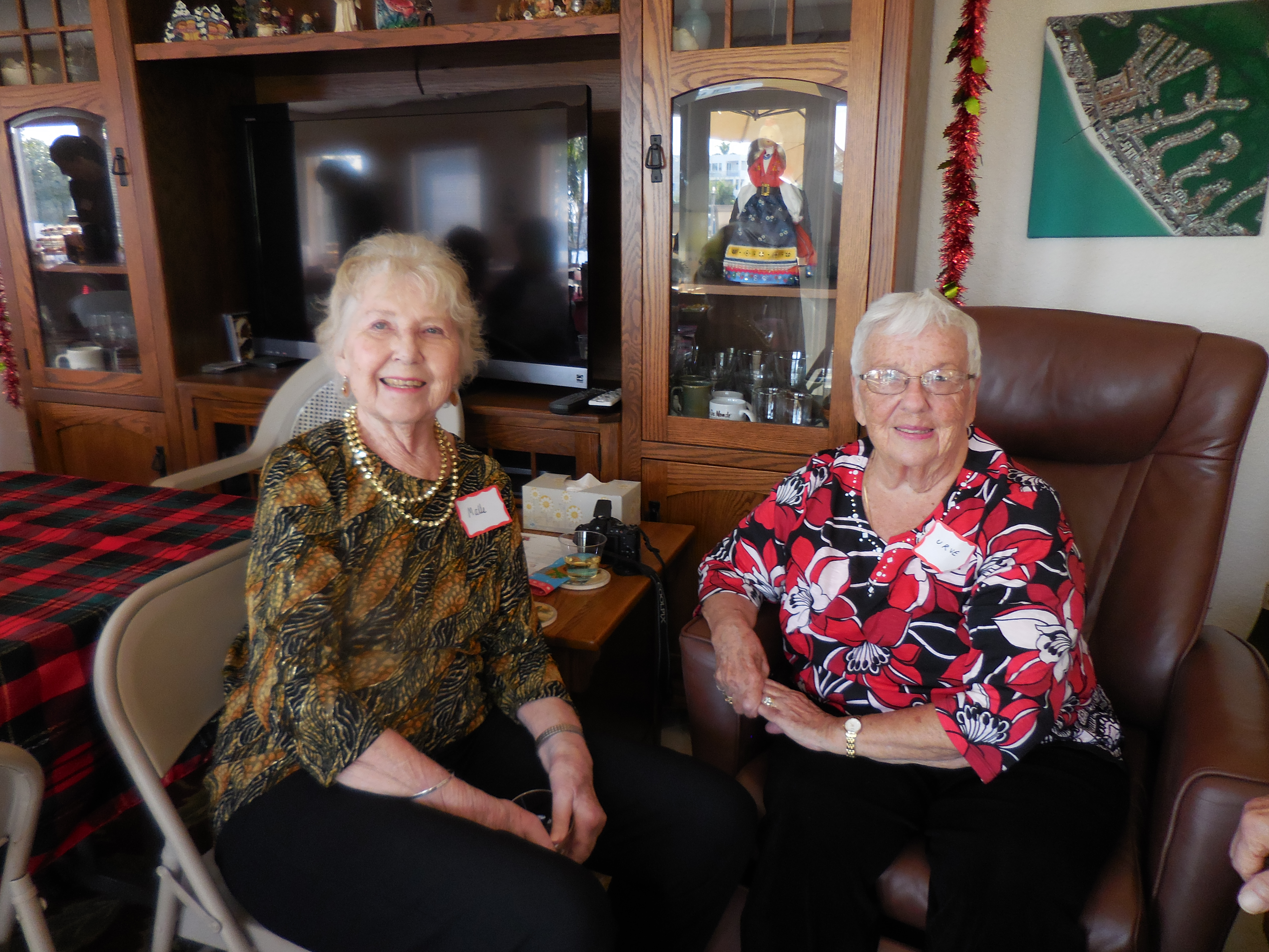 Malle Sibul and Urve Põhi. Jõuluvana visits Kesk Florida Eesti Selts. 8. dets. 2018. N Redington Beach, FL. Foto: Lisa A. Mets