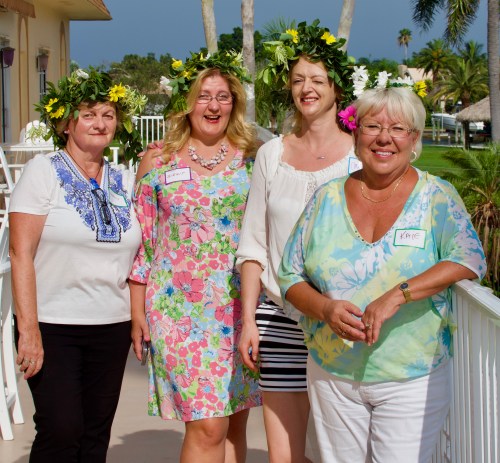 Anneliis Kuusik, Birgit Delaidatti, Moonika Mägi and Kaie Põhi Latterner model their wreaths. Latvian Ligo/Estonian Jaanipäev celebration. June 22, 2019. St. Petersburg, FL. Foto: Erkki Taada