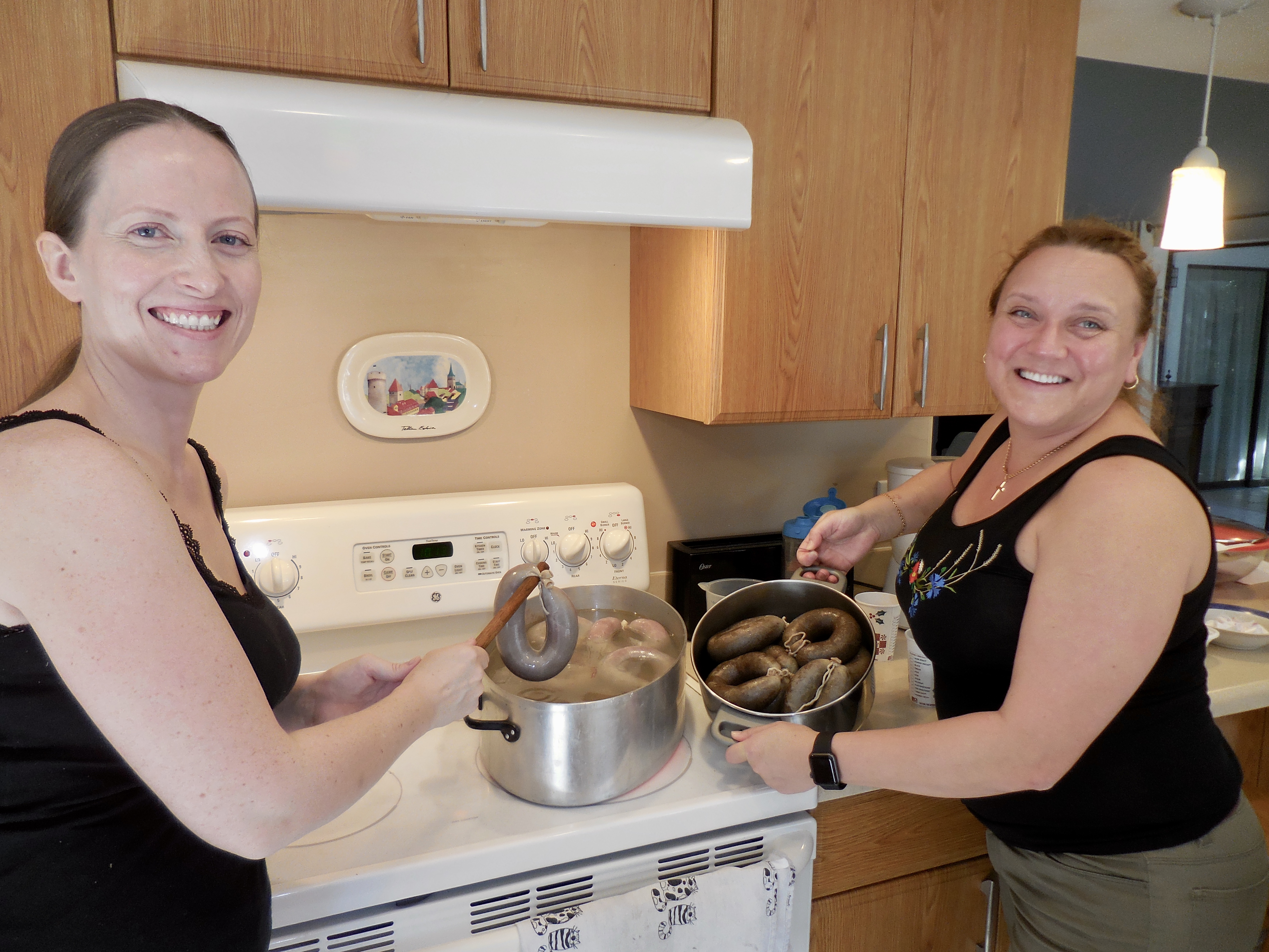 Regina Reet Cabrera and Marju Susi Dishmey. Christmas sausage (verivorst) making. Estonian Society of Central Florida/Kesk Florida Eesti Selts. 2. dets. 2017. Home of Maare and Jaan Kuuskvere, Bradenton, FL. Foto: Lisa Mets