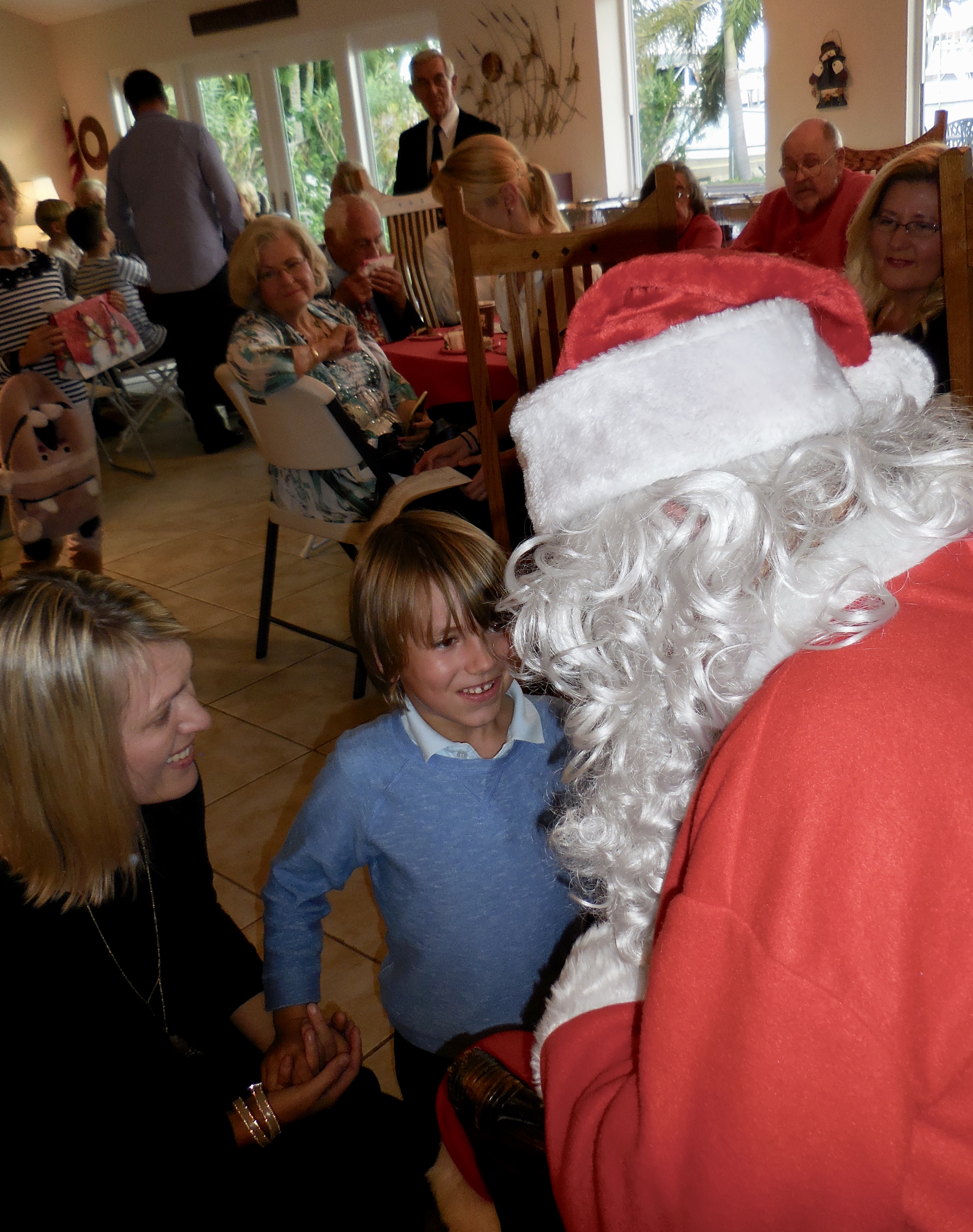 Mateo Lorenzo tells Santa a good joke. Estonian Society of Central Florida Christmas Luncheon/KFES Jõululõunasöök, 9. dets. 2017, North Redington Beach, FL. Foto: Lisa Mets