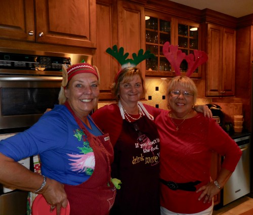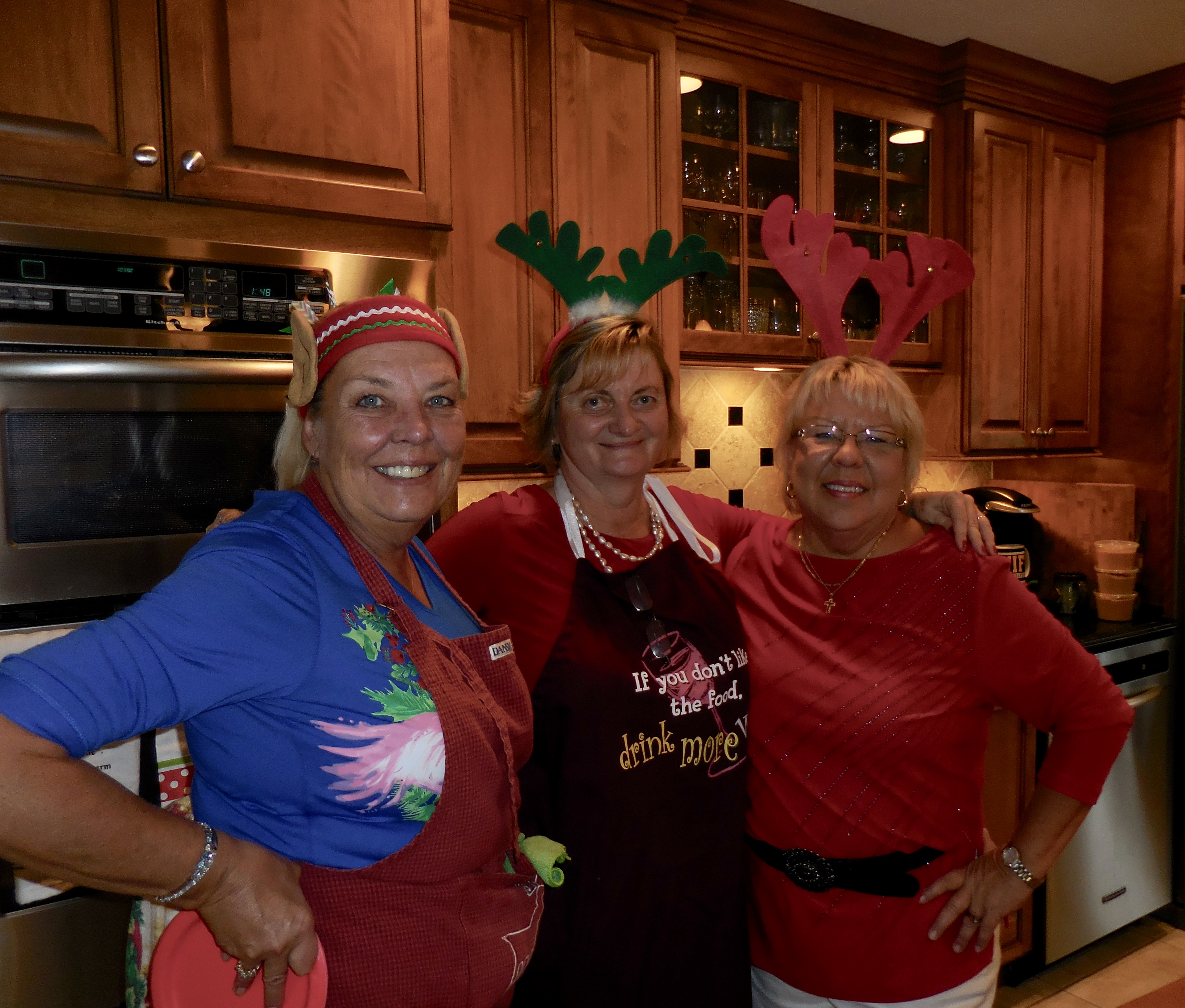 Virve-Kai Bulla, Anneliis Kuusik, and Kaie Põhi Latterner, our three magnificent elves making it all happen. Estonian Society of Central Florida Christmas Luncheon/KFES Jõululõunasöök, 9. dets. 2017, North Redington Beach, FL. Foto: Lisa Mets
