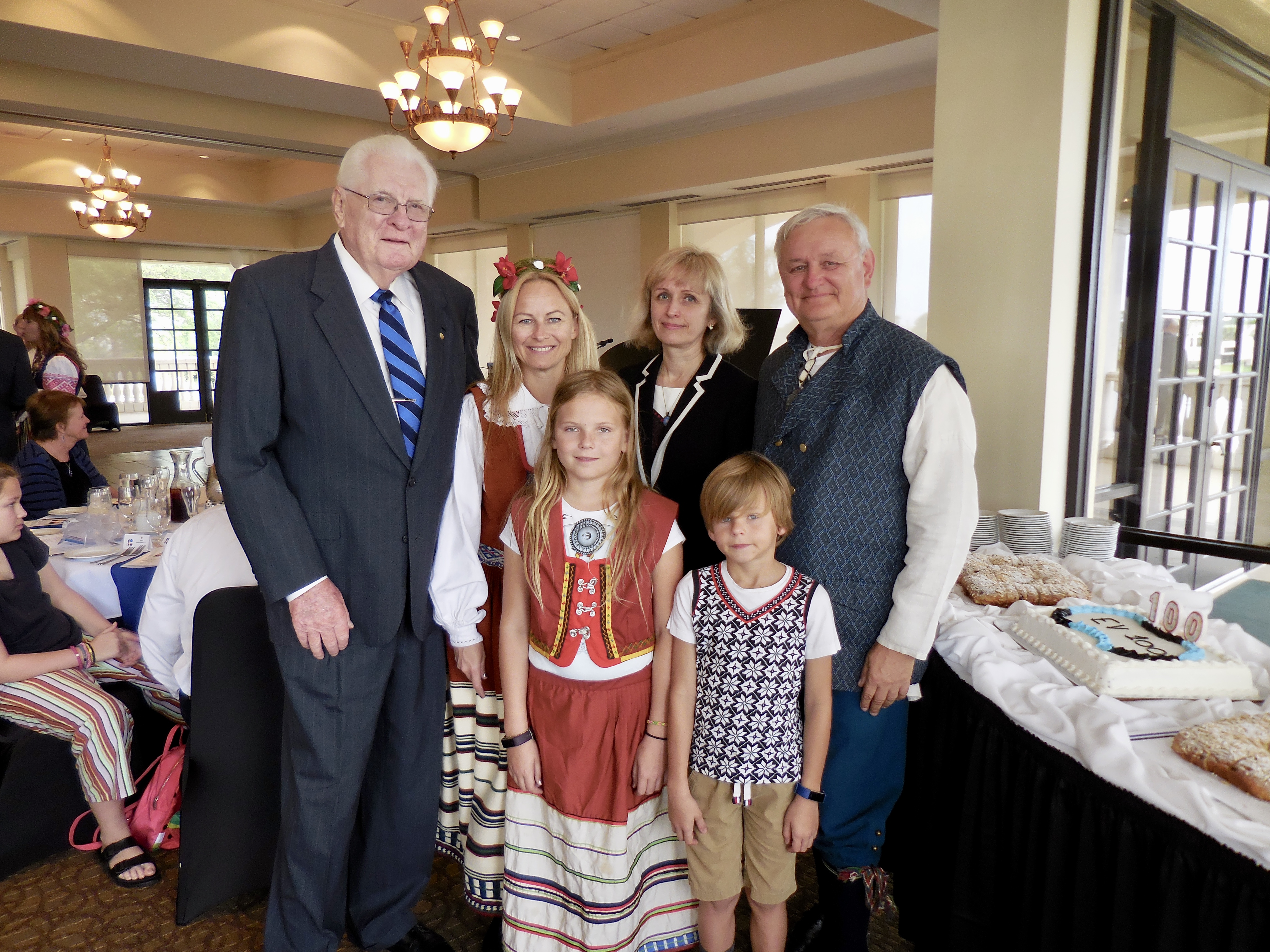 KFES founder Henn Rebane generously donated traditional Estonian costumes to KFES. Henn Rebena, Triin Karr, Eesti Peakonsul Kairi Kunka, Erkki Taada with children Annika and Logan Karr. Anneliis Kuusik welcomes guests. Kesk Florida Eesti Selts EV100. March 10, 2018. Clearwater, FL. Photo: Lisa A. Mets