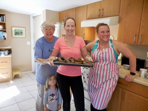 Take them out to cool. Maare Kuuskvere, Brook ja Regina Reet Cabrera, ja Marju Dishmey. Kesk Florida Eesti Seltsi jõuluvorsti talgud. 17. nov. 2018.a. Bradenton, FL. Foto: Lisa A. Mets