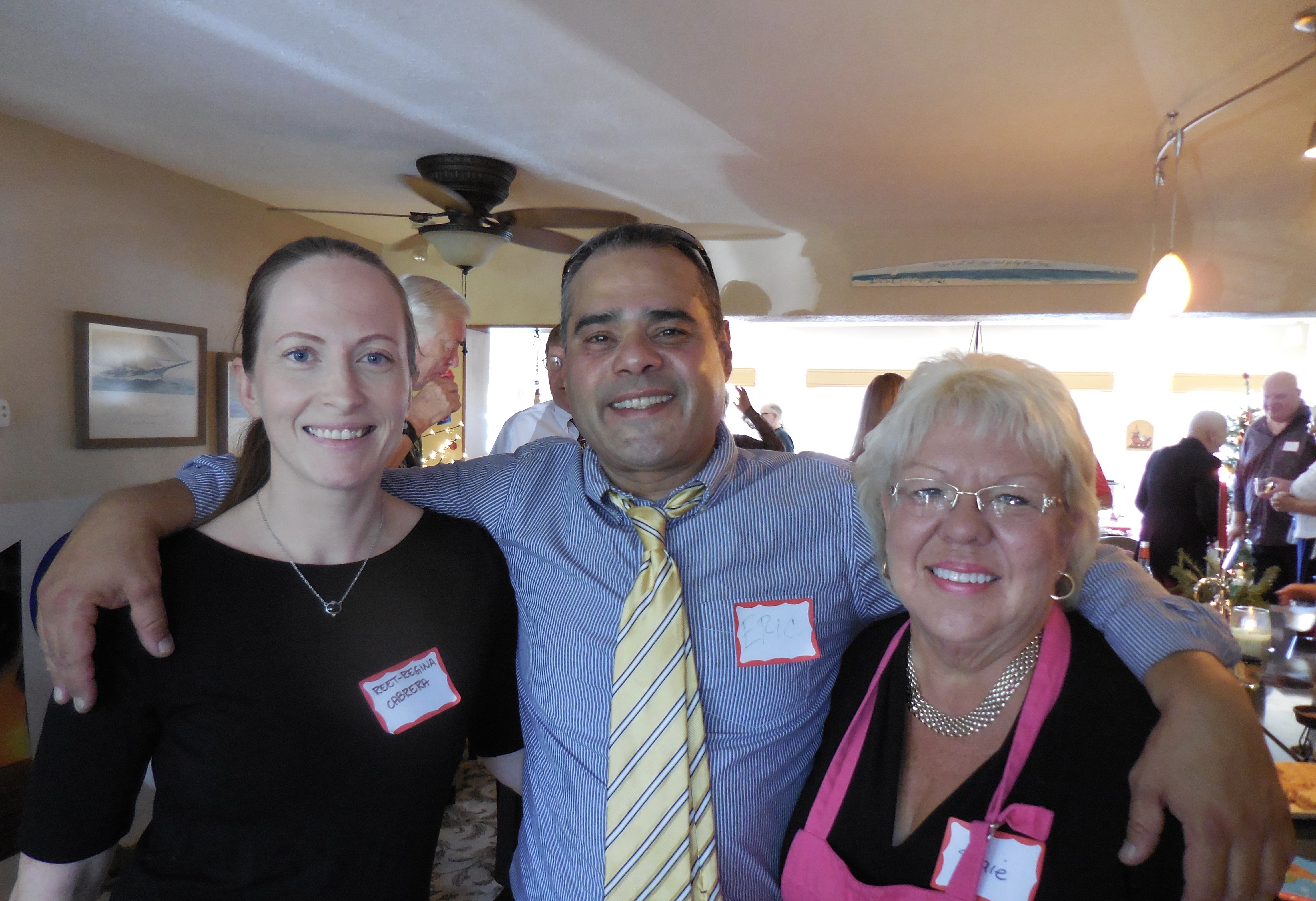 Regina Reet and Eric Cabrera with Kaie Põhi Latterner. Jõuluvana visits Kesk Florida Eesti Selts. 8. dets. 2018. N Redington Beach, FL. Foto: Lisa A. Mets
