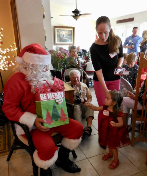 Brook Cabrera is ready for her present. Mom Regina Reet is there for support. Jõuluvana visits Kesk Florida Eesti Selts. 8. dets. 2018. N Redington Beach, FL. Foto: Lisa A. Mets
