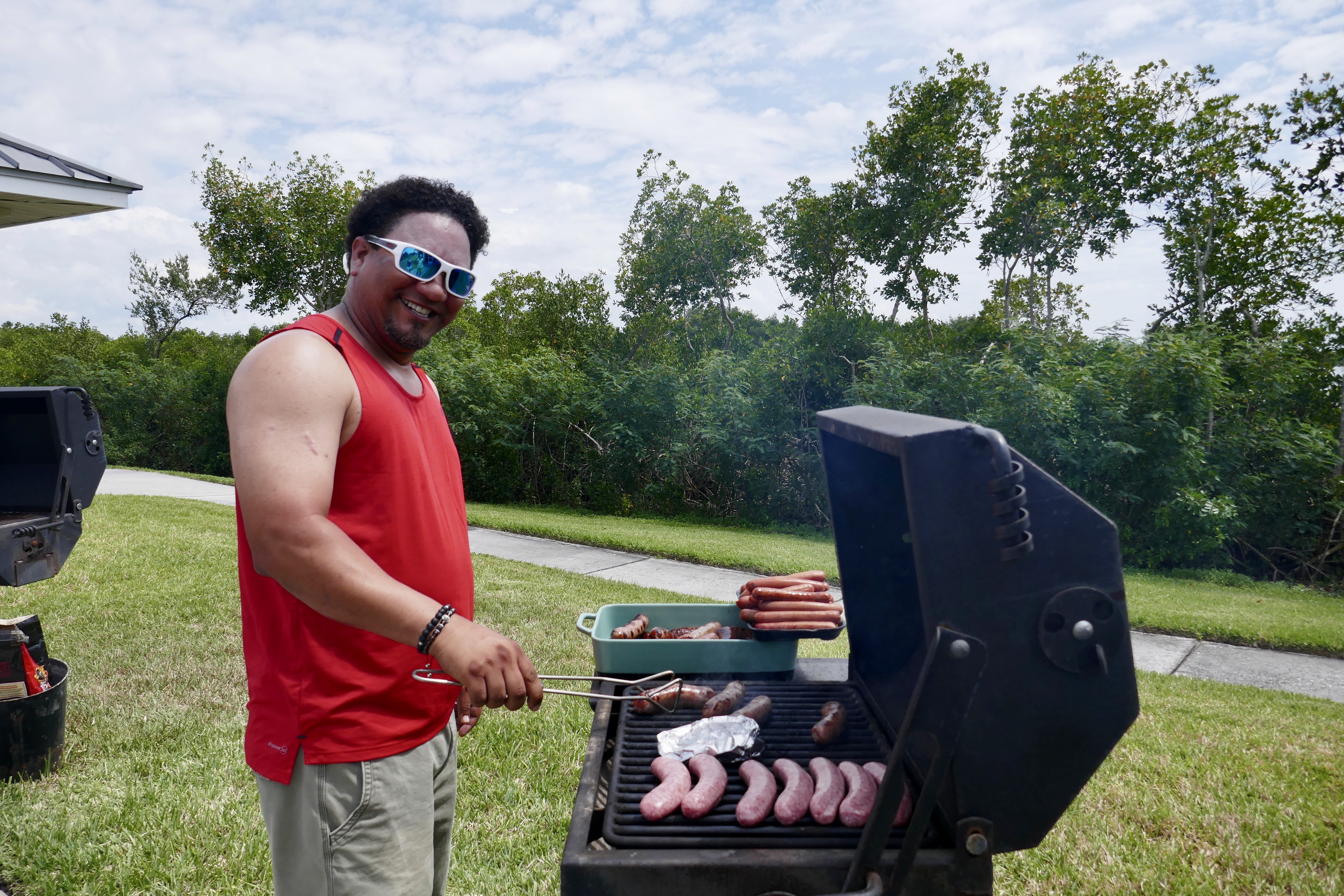 Our fabulous grillmaster, Dallas Dishmey. Kesk Florida Eesti Selts piknik. 13. apr. 2019. Seminole, FL. Foto: Lisa A. Mets