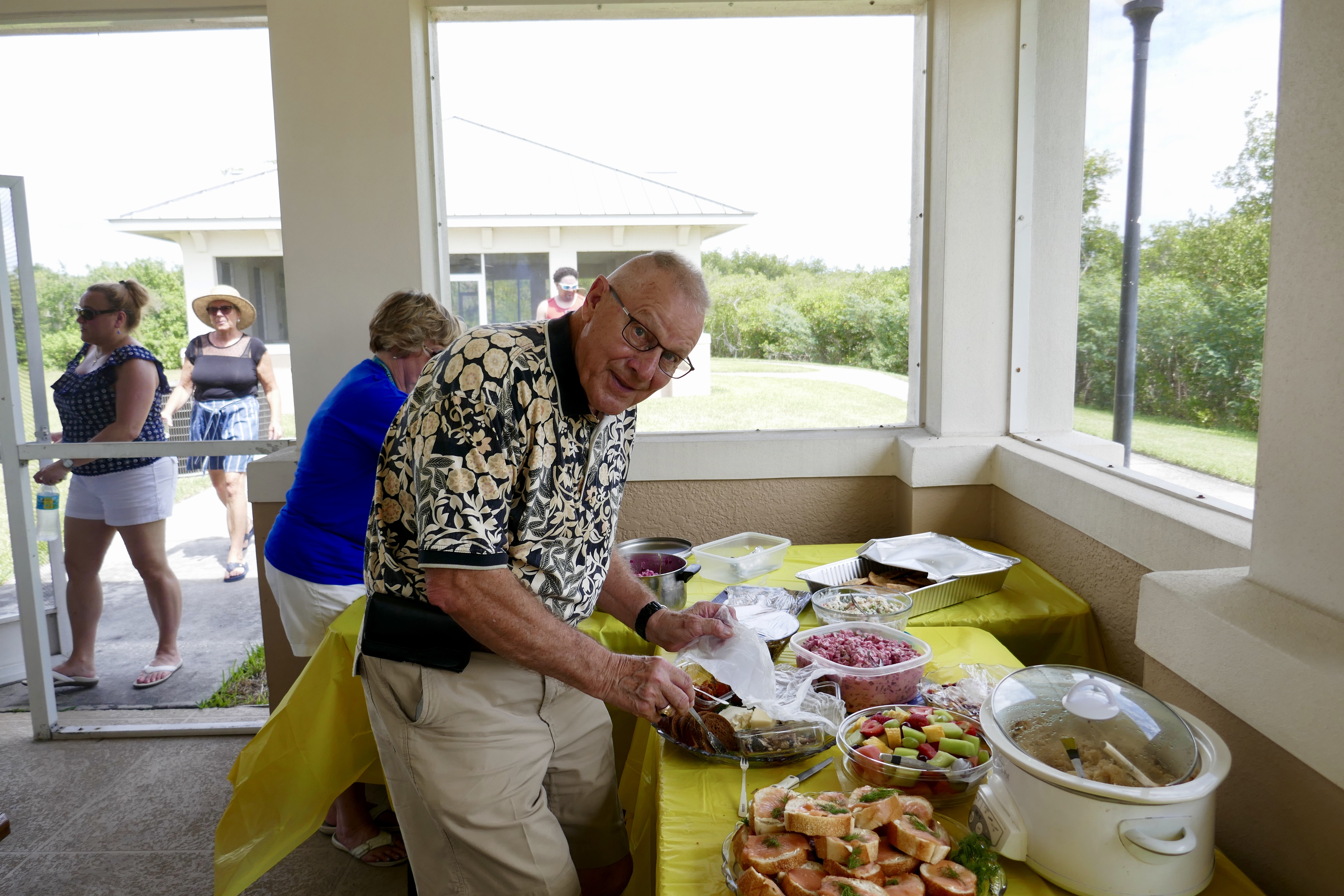 Heikki Joonsar sneaks a taste. Kesk Florida Eesti Selts piknik. 13. apr. 2019. Seminole, FL. Foto: Lisa A. Mets
