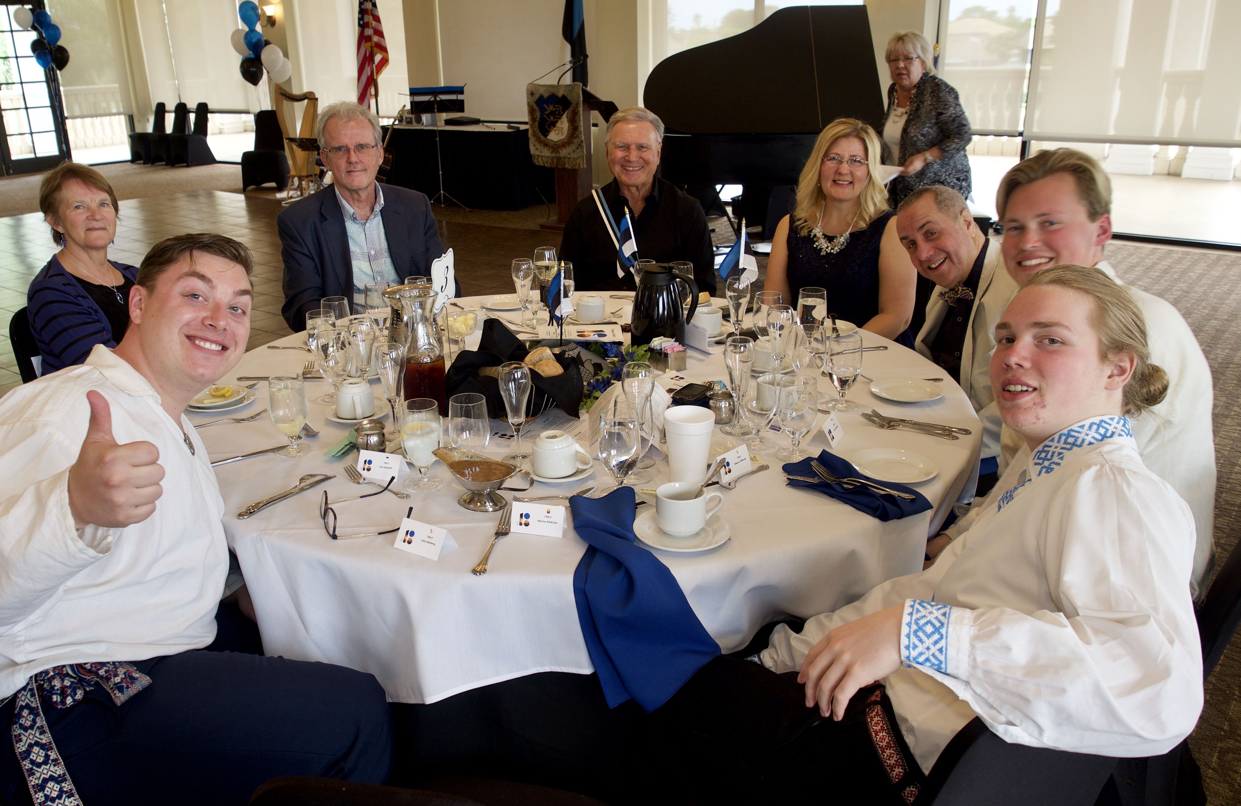 Table 3 Ivan Kavoleff, Ülle Laido, Dermot Somerville, Rein Männik, Birgit and Vincent Delaidatti, Aksel Põldmäe, and Magnus Põldmäe. Kesk Florida Eesti Selts EV100. Clearwater, FL. March 10, 2018. Photo: Erkki Taada