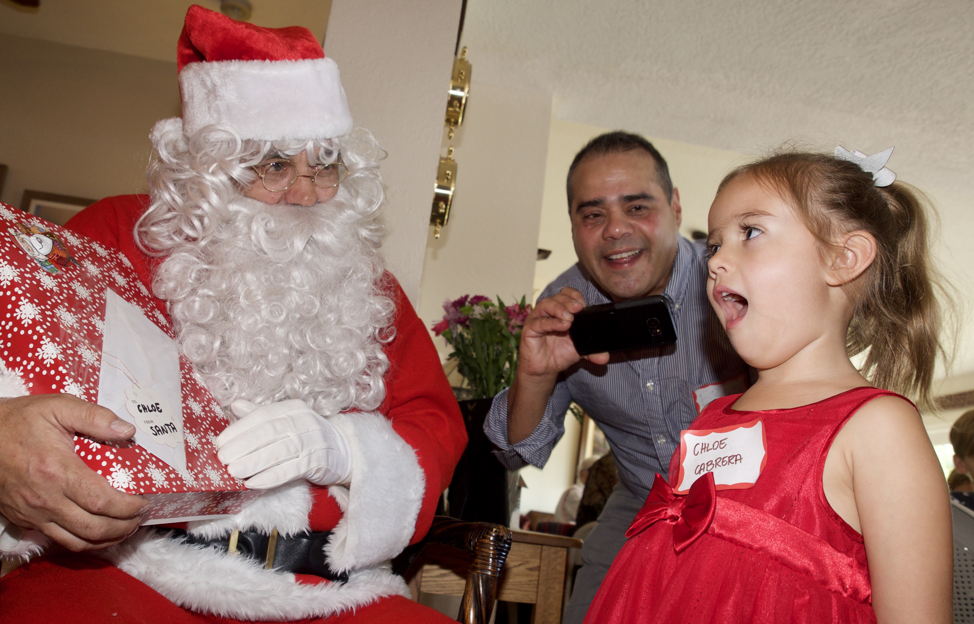 Chloe Cabrera sings for Jõuluvana and daddy Eric. Jõuluvana visits Kesk Florida Eesti Selts. 8. dets. 2018. N Redington Beach, FL. Foto: Erkki Taada