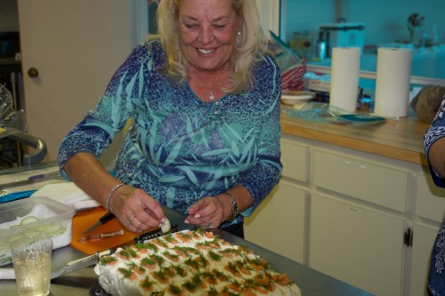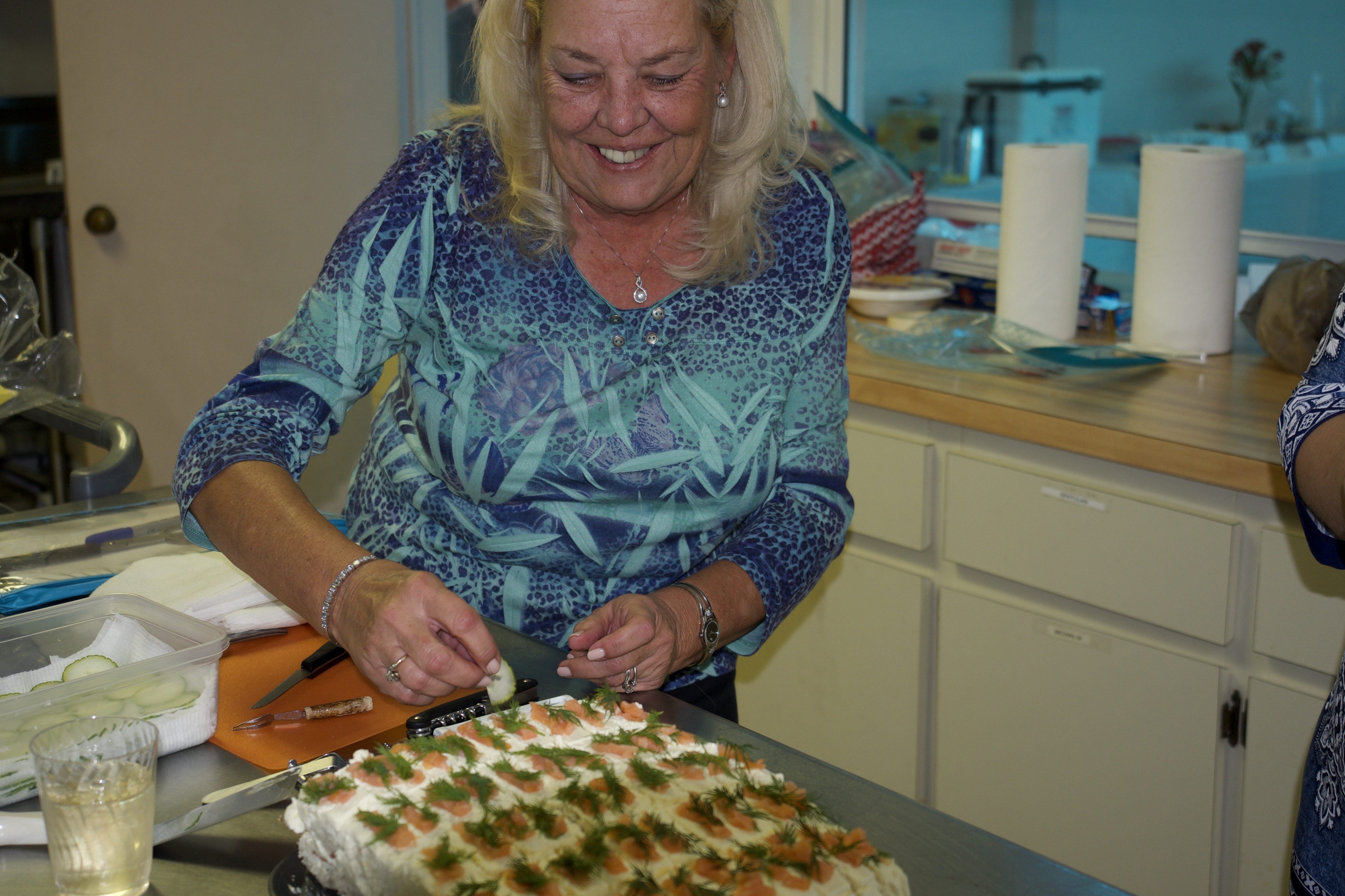 Virve Kai Bulla’s extraordinary salmon sandwich cake. KFES Supi ja võileiva lõunasöök. 25. jaan. 2020. Seminole, FL.