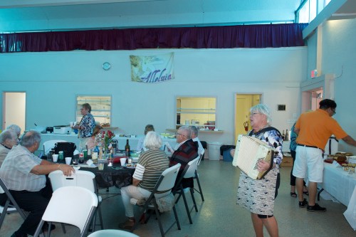 Kaie Põhi Latterner leads us in song. KFES Supi ja võileiva lõunasöök. 25. jaan. 2020. Seminole, FL.