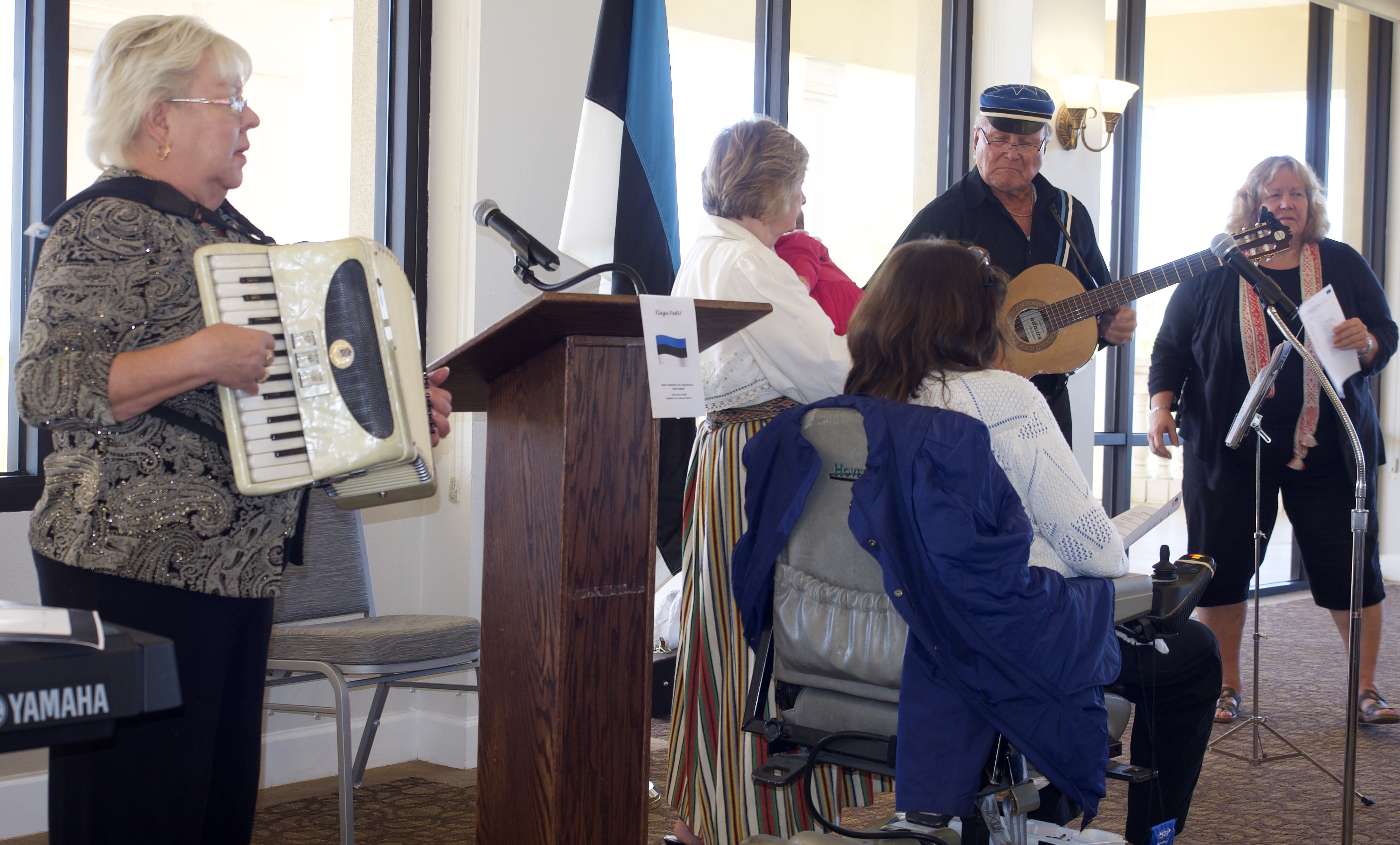 Kaie Põhi Latterner and Rein Männik, on accordion and guitar, lead ühislaulud. Kesk Florida Eesti Selts EVA 102 tähistamine. 22. veeb. 2020. Clearwater, FL. Foto: Lisa A. Mets