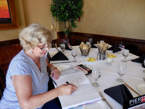 Mai Treude signs in. Estonian Society of Central Florida/Kesk Florida Eesti Selts, Annual Meeting, 1 oktoober 2017, Bradenton, FL.